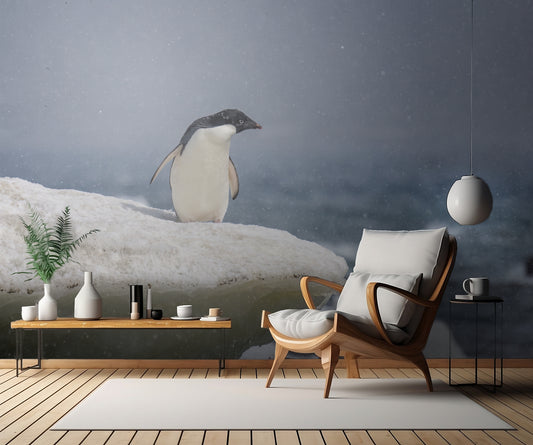 Adelie penguin in snow shower fototapet