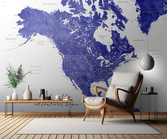 Adventure map of North America in cobalt blue fototapet