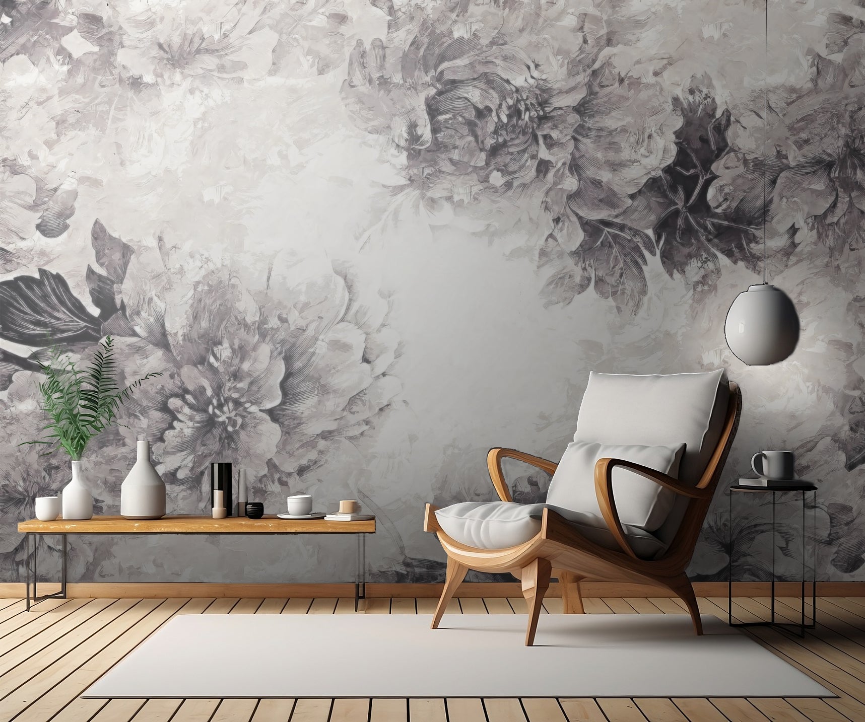 Med en grå bakgrund och blommor i olika nyanser blir denna tapet en elegant och stilren detalj i ditt hem. Den botaniska designen ger rummet ett naturligt och avslappnat intryck, samtidigt som filter-effekten ger en modern twist.