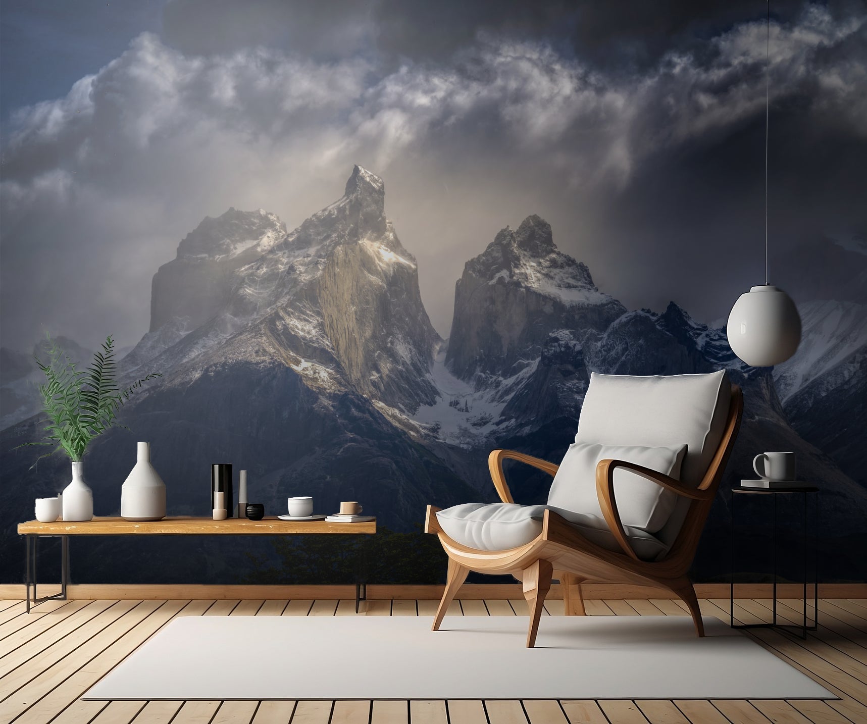 Genom att införliva spektakulära tageliknande toppar och snöklädda bergstopp, fångar "A Beam of Sunlight" väggtapeten essensen av Torres del Paine-bergen. Varje penseldrag avspeglat i denna design förvandlar ditt rum till ett mästerverk av naturens underverk.