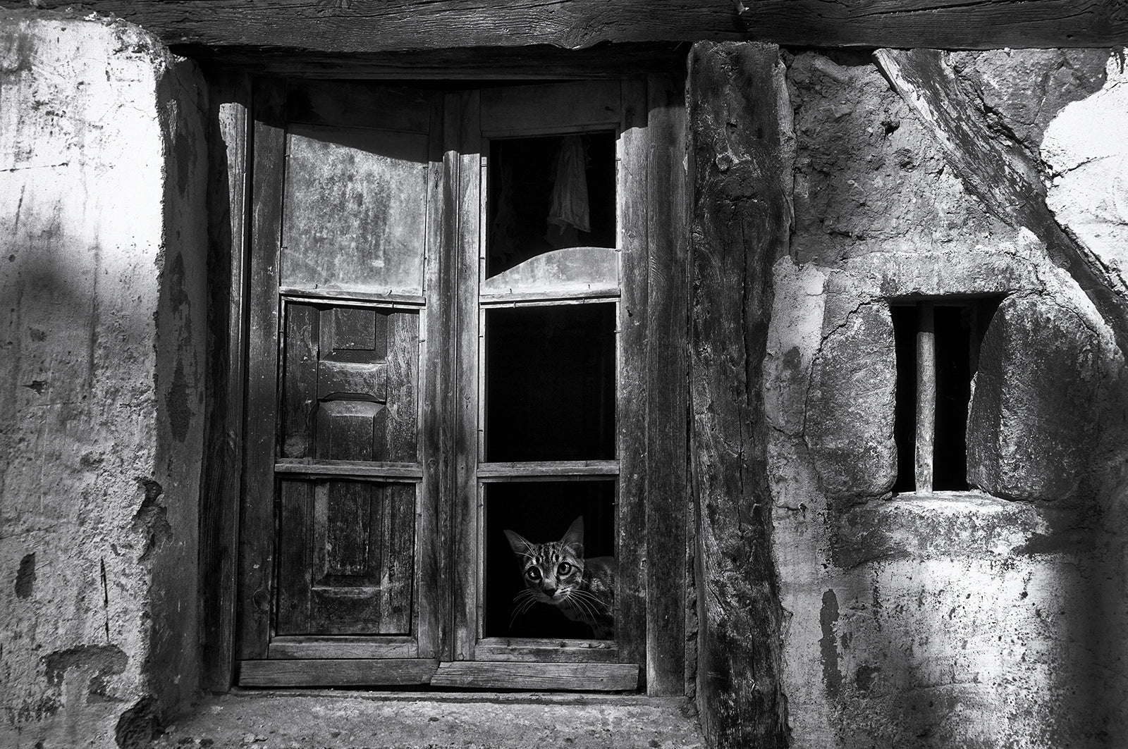 Låt dig förtrollas av den charmiga och nyfikna katten på väggen med vår tapet "A curious cat" skapad av Jose C. Lobato.
