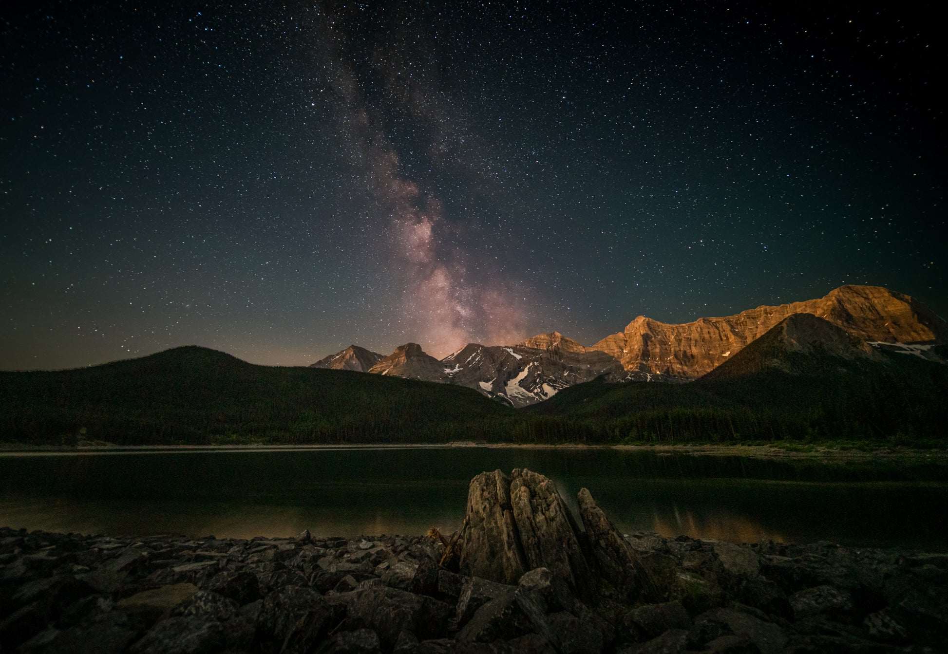 Stig in i en värld av skönhet och äventyr med förtrollande tagningar av en klar natthimmel, fylld med sprakande stjärnor och den mjölkvita vägen som sträcker sig över horisonten. Tapetens mångfacetterade motiv tar dig med på en resa över bergstoppar, förbi forsande vatten och gigantiska klippor som skulpterats av tidens gång.