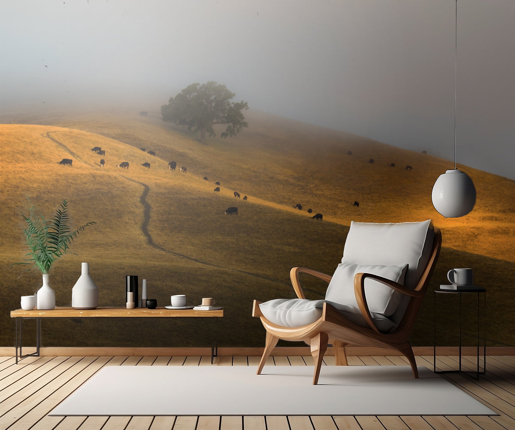 Med en perfekt balans mellan dimma, landskap och djurliv skapar denna tapet en känsla av frid och harmoni i varje rum den pryder. Med TriValleys lantliga charm och närheten till San Francisco, Kalifornien, är det som att få en glimt av det vackra livet på landet varje dag.