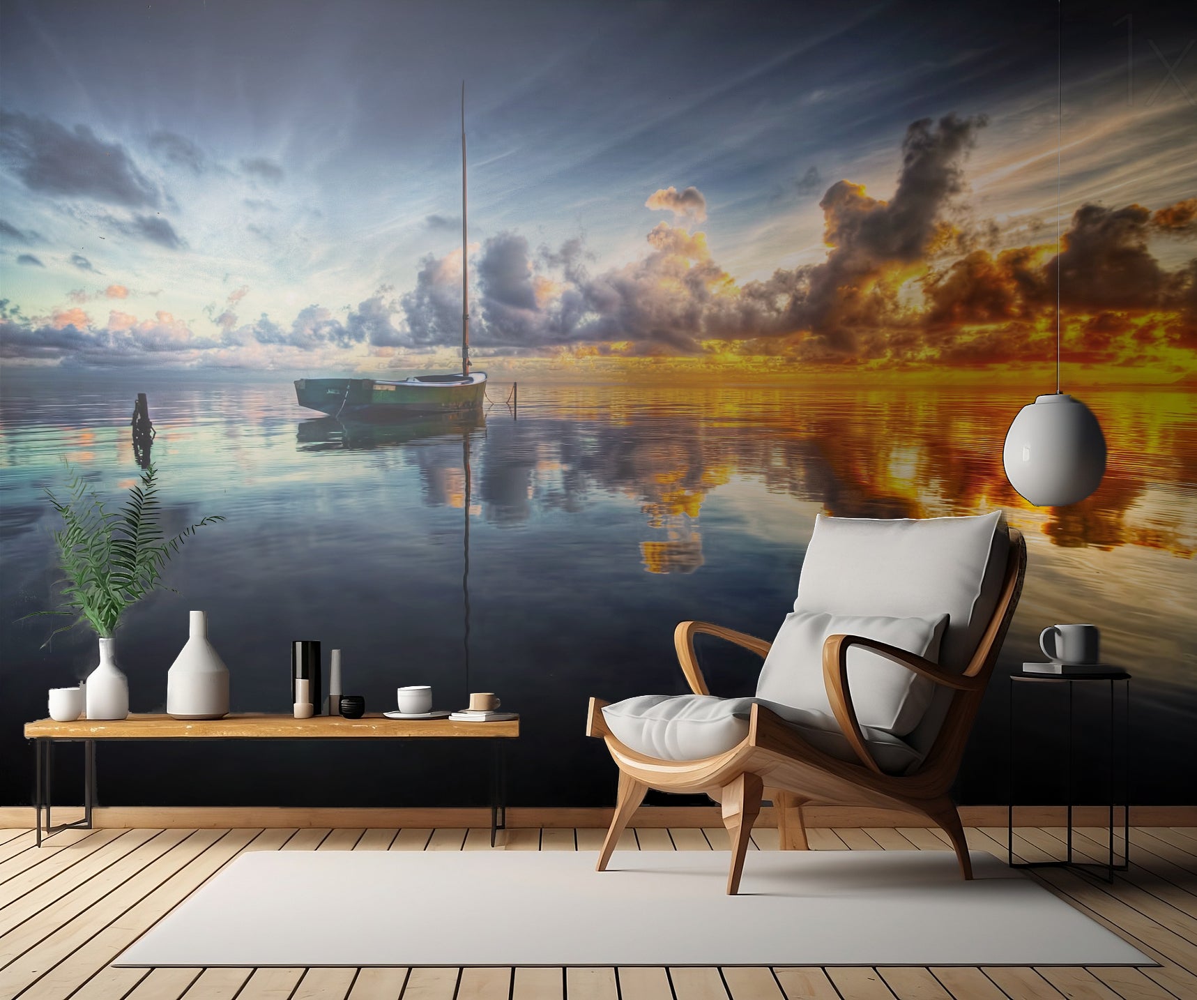 En perfekt väggdekoration för dem som älskar havet och drömmen om att segla bort mot horisonten. Ge ditt rum en touch av avkoppling och inspiration med denna vackra tapet.