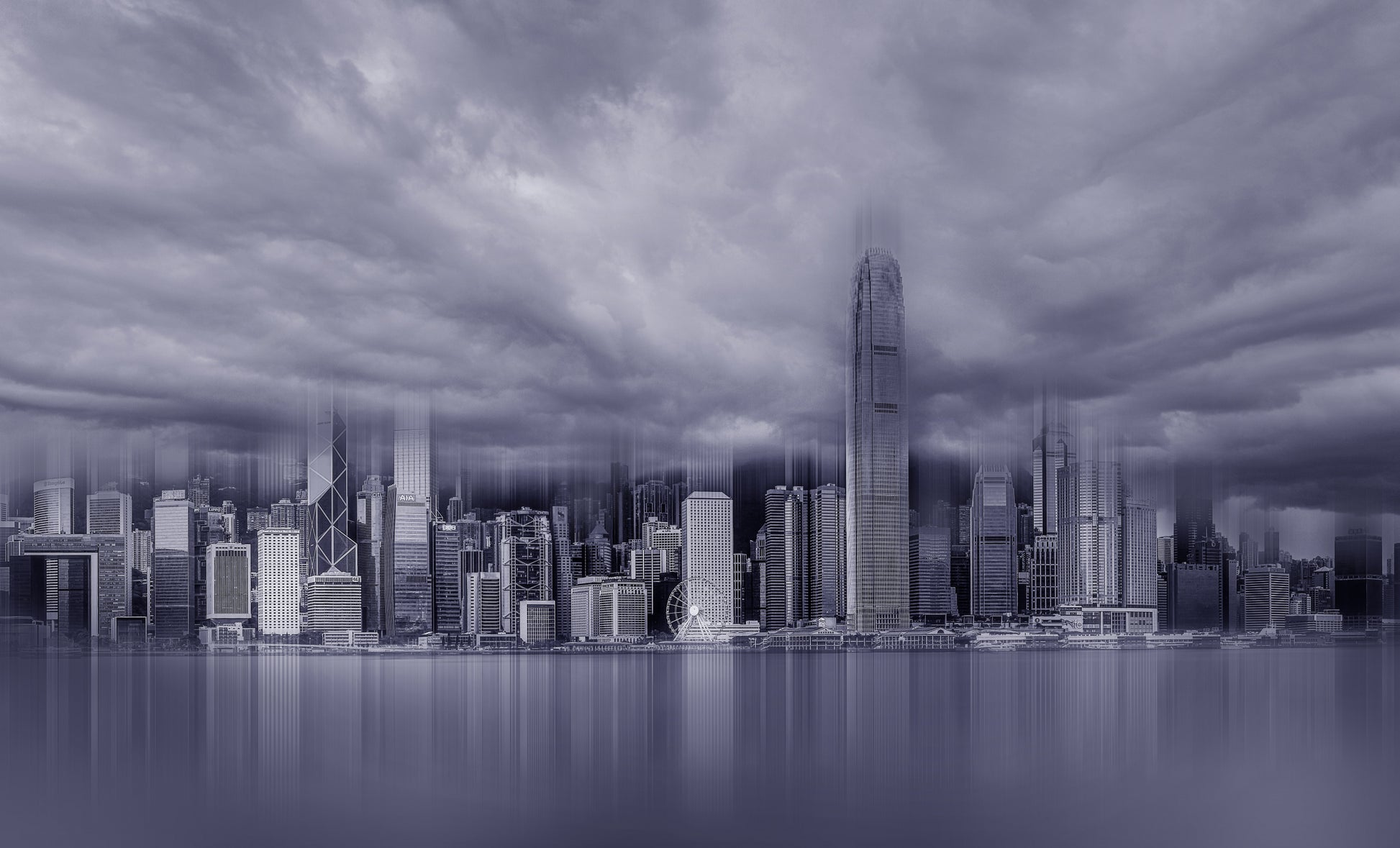 Förvandla ditt hem till en modern metropol med den vackra väggtapeten "A view of Victoria Harbor in Hongkong", skapad av den talangfulla konstnären Weihong Liu.