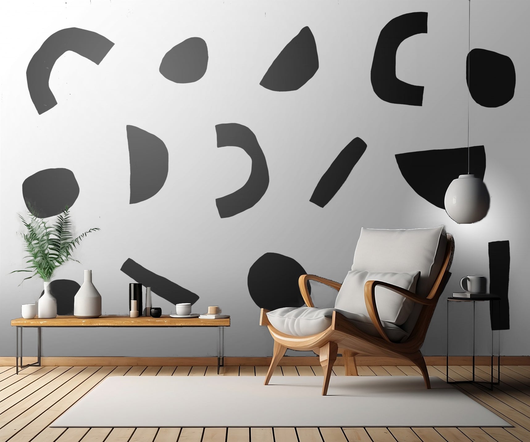 Med en ljus bakgrund i svart och vitt passar denna tapet perfekt in i minimalistiska och moderna inredningsstilar. Mönstret består av geometriska former och organiska linjer som ger en spännande och levande känsla till väggen.
