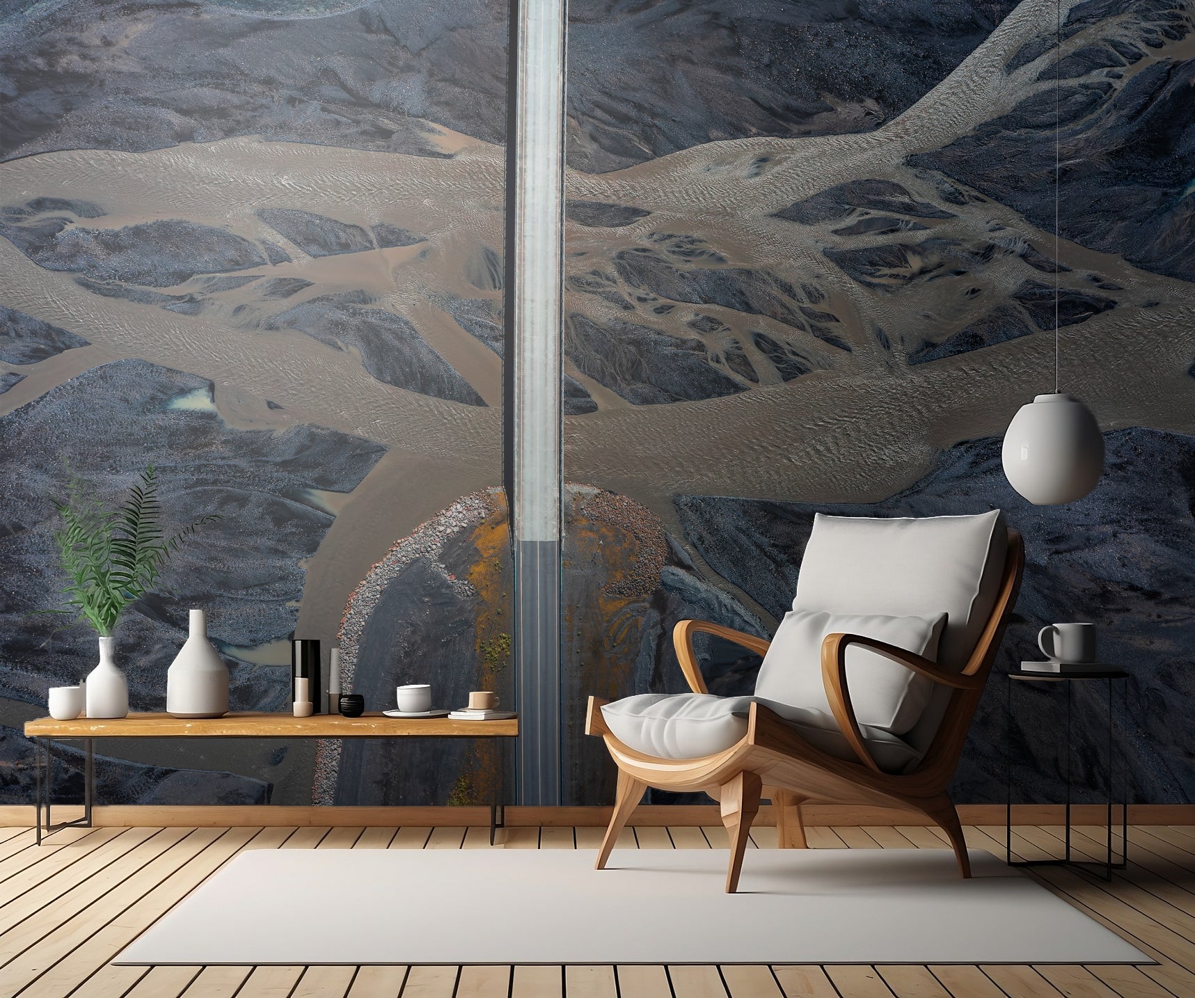 Upplev konstverket som tar dig bortom verkligheten. Upplev "Across the Delta" från Jure Kravanja och förundra dig över majestätiska landskap, slingrande vägar och vatten som binder samman allt. Skapa en atmosfär av äventyr och skapelse genom att välja denna fantastiska tapet.