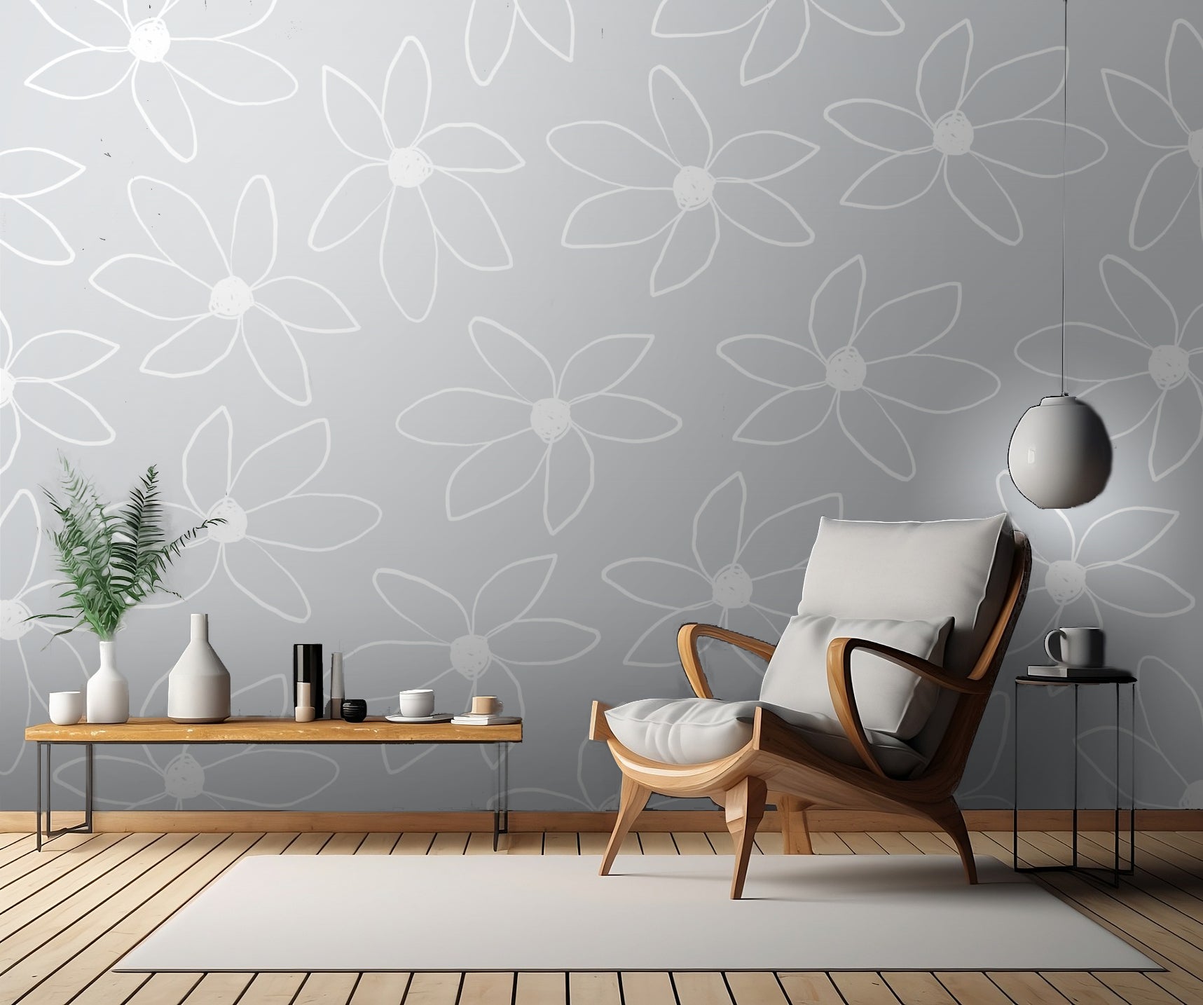 Skapa en vacker och luftig atmosfär i ditt hem med vår väggtapet "Airy Flowers No 1" från uplusmestudio. Med dess eleganta blommönster i grå nyanser skapar tapeten en harmonisk bakgrund i rummet. Blommornas ljusa och höga toner ger en lyxig känsla och ett vackert färgspel som skapar en inbjudande atmosfär.