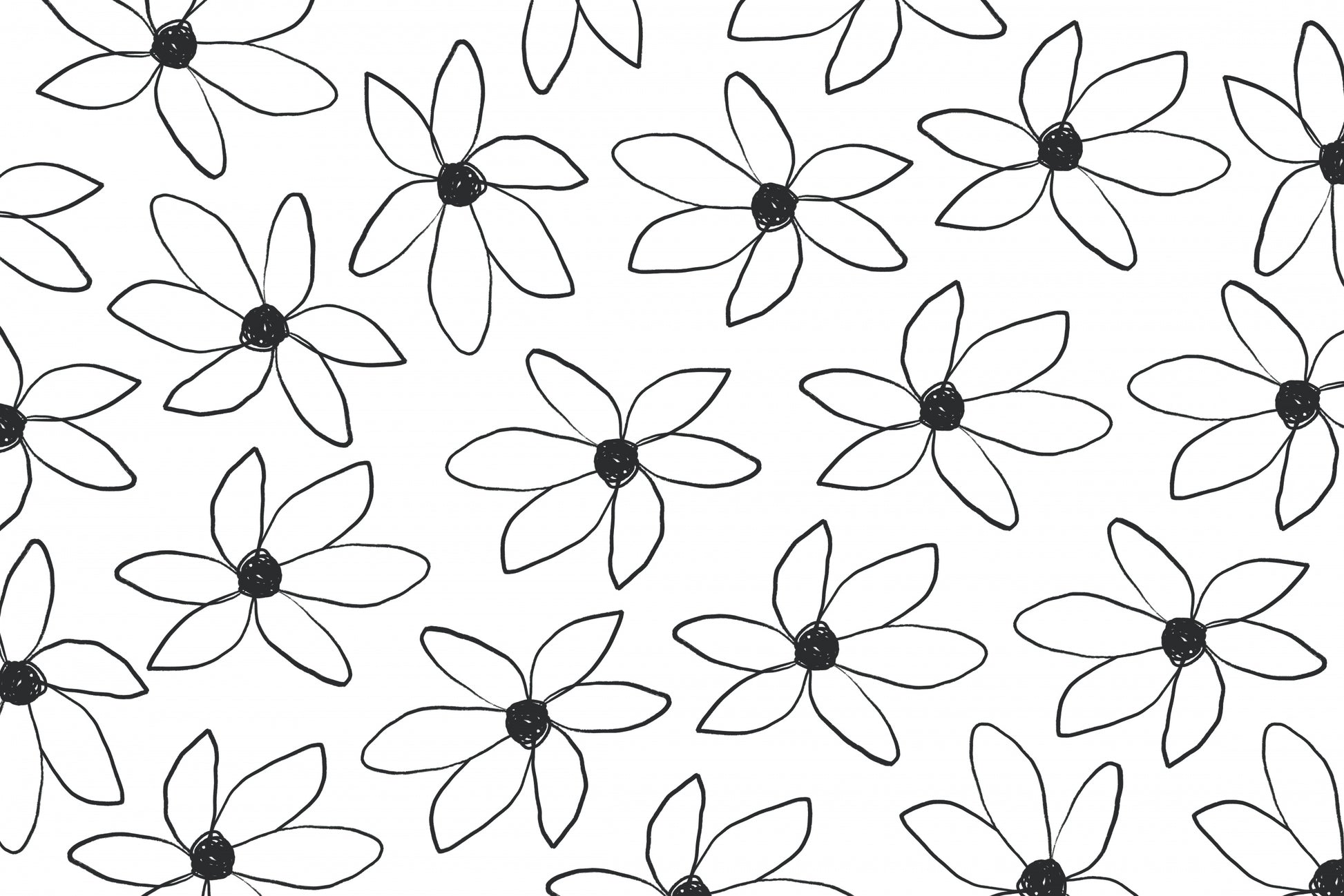 Designen är en vacker kombination av blommor och botaniska element i en stilren svartvit färgskala. De abstrakta linjerna och mönstret skapar en harmonisk och elegant känsla som passar perfekt för den som söker något modernt och stilrent.