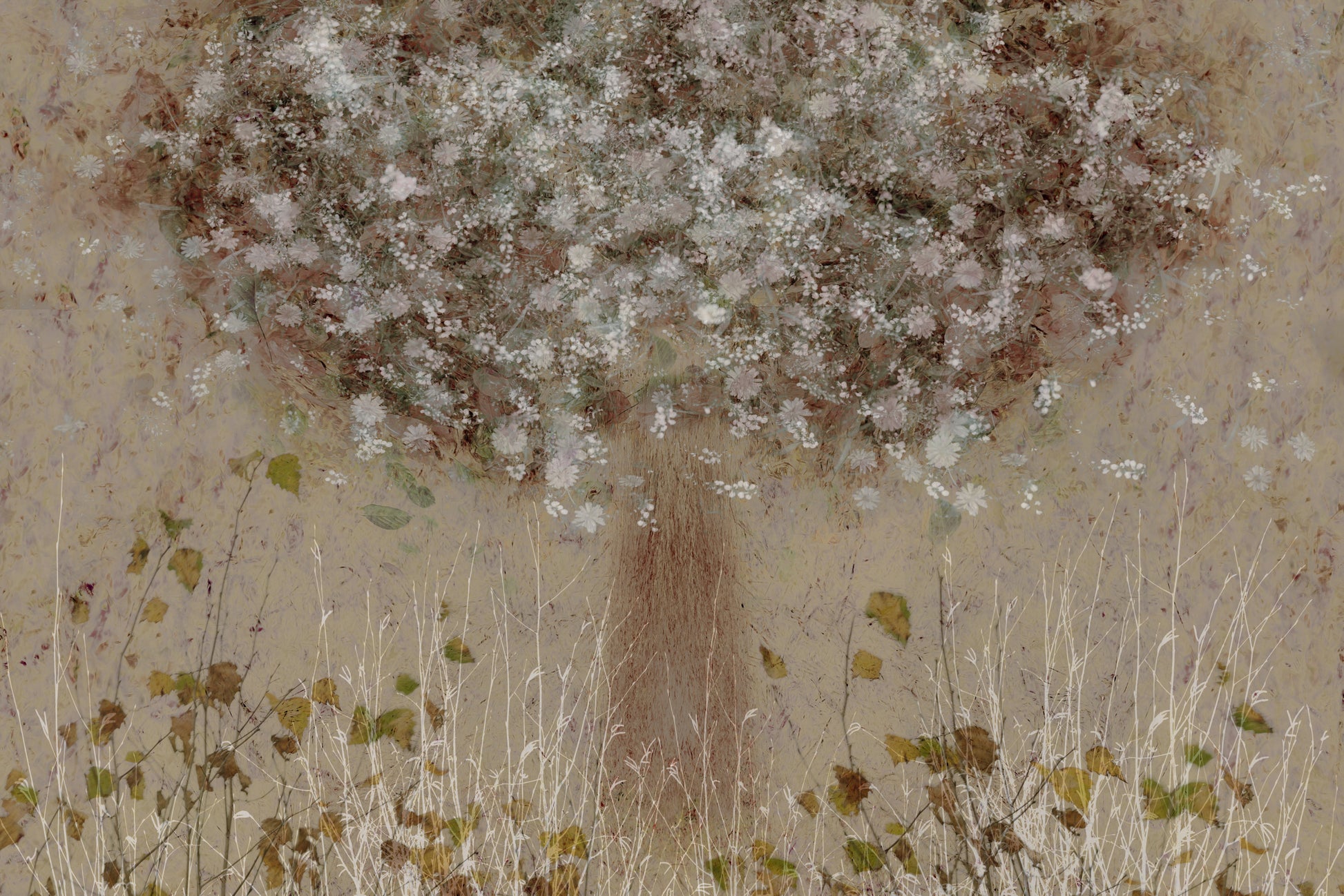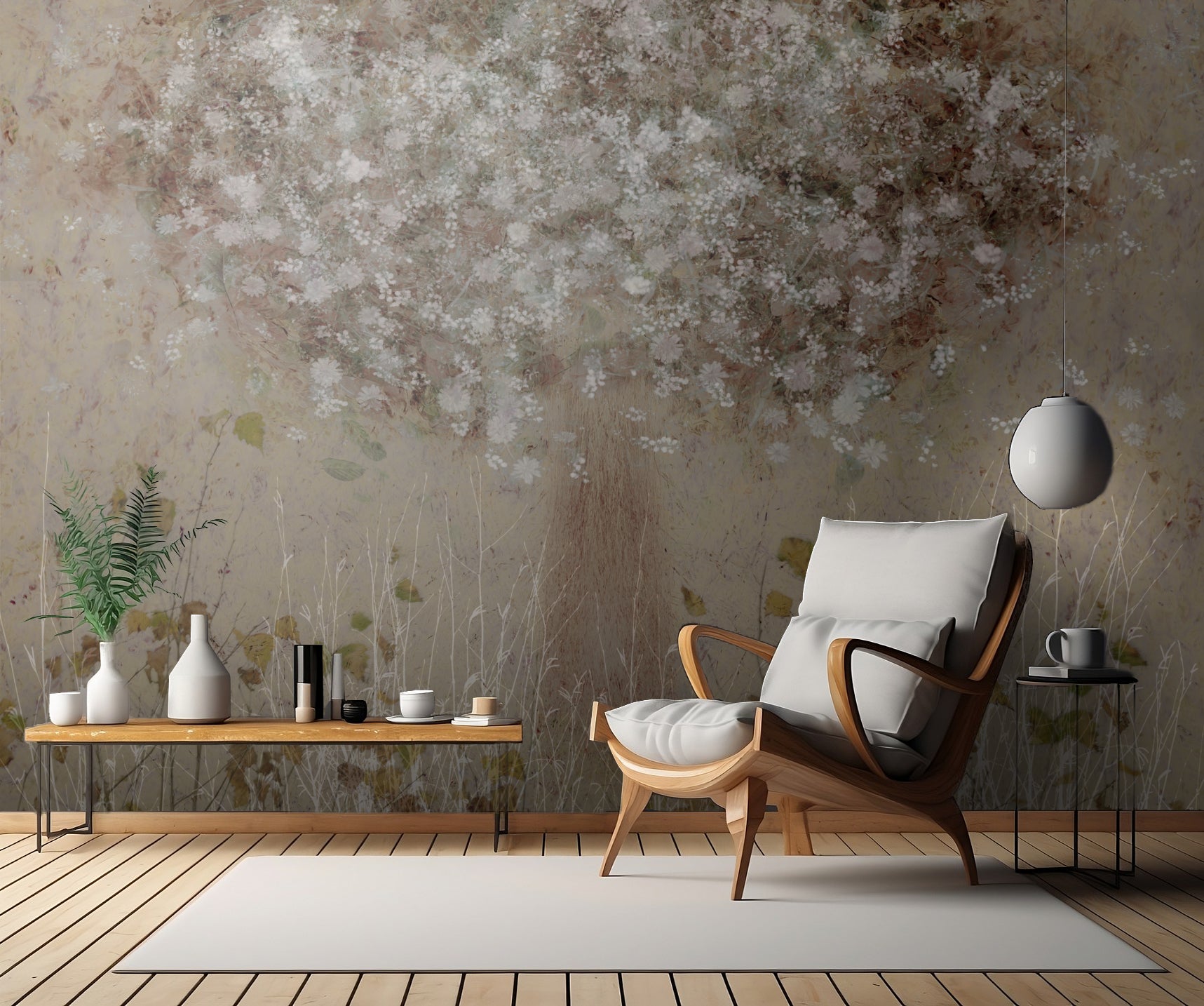 Den kreativa redigeringen ger tapeten en levande och dynamisk känsla, samtidigt som det grafiska och måleriska uttrycket ger rummet en touch av elegans. Oavsett om du är ute efter ett blomstrande landskap eller en ensamstående trädgren som smyckar väggen, erbjuder "All seasons" en mångsidig och vacker design.