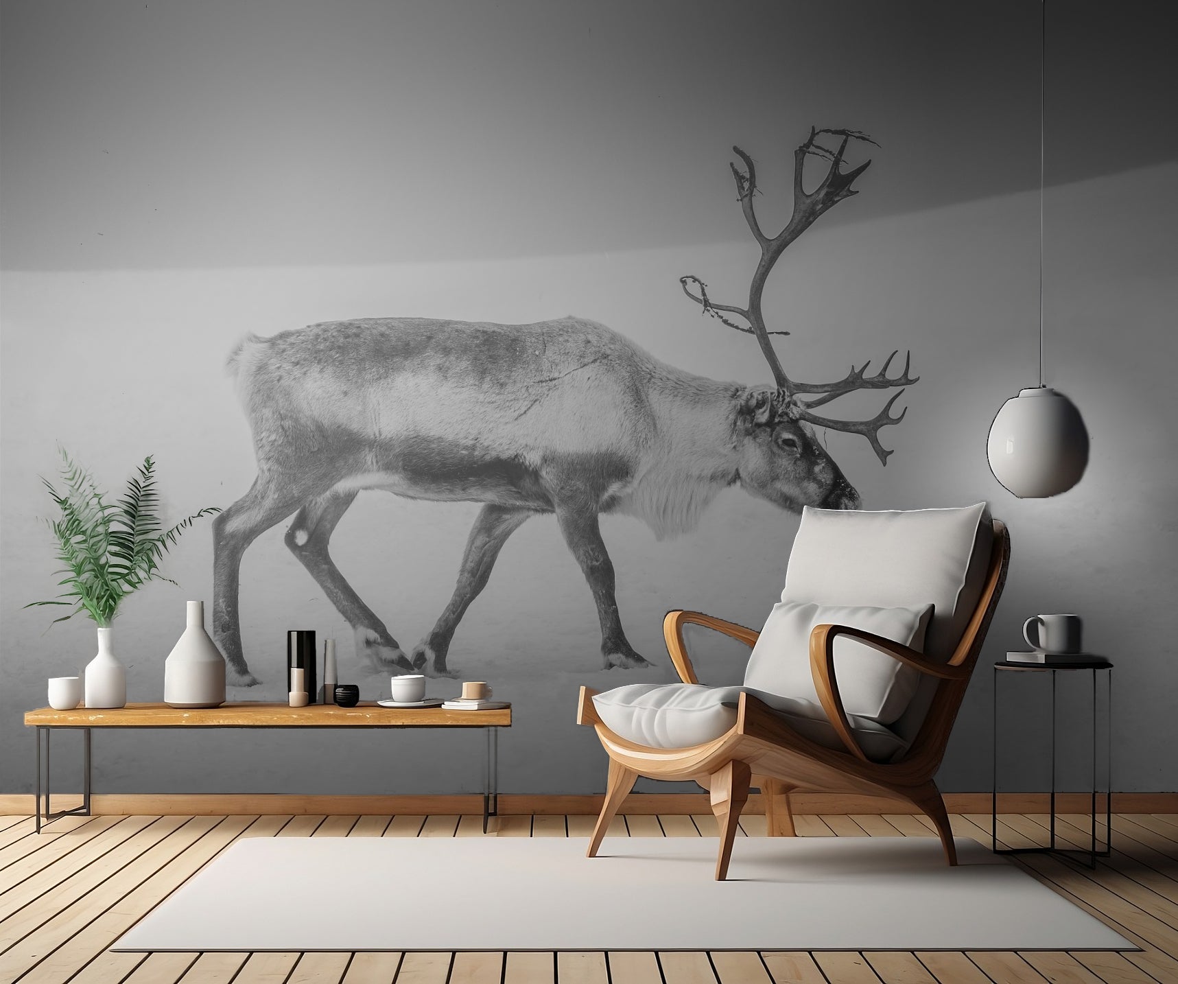 Denna tapet, skapad av den talangfulla Giovanni Venier, fångar den magiska känslan av att vara ensam mitt i den arktiska ödemarken. Du kommer att bli förbluffad av detaljerna och realismen hos de imponerande renarna som vaggar fram i snön, omringade av kyla och vinterlandskap.
