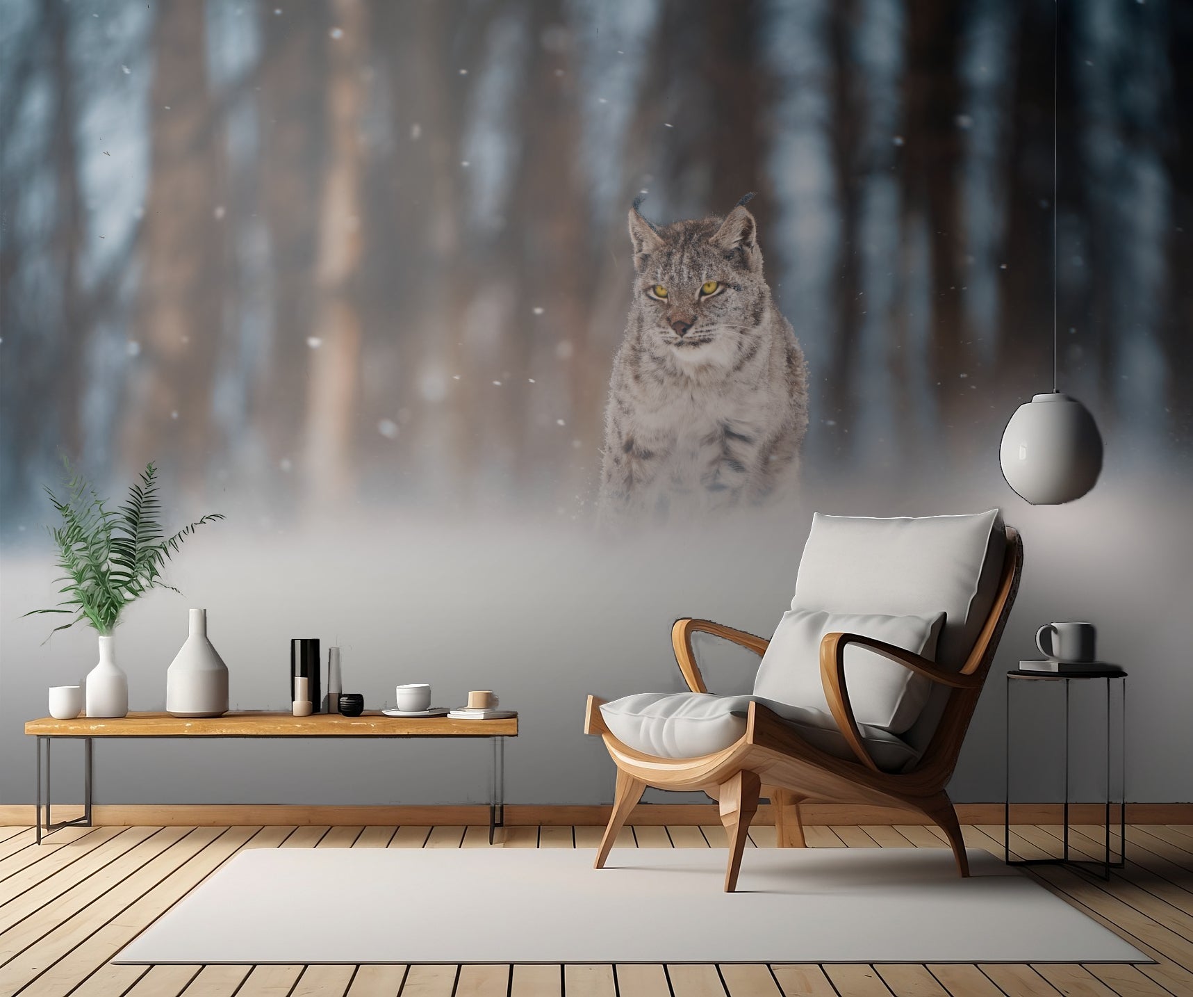 Amidst Snowstorm" är en väggtapet skapad av den talangfulla konstnären Lukas Furch. Denna vackra tapet fångar en magisk stund mitt i en snöstorm, där en elegant lodjur smälter in i den snötäckta vildmarken. Med sin kraftfulla närvaro och vackra päls skapar lodjuret en känsla av mystik och vildhet i ditt rum.