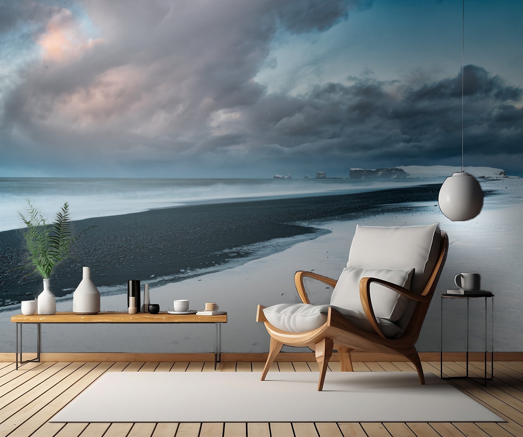 Skapa en dramatisk atmosfär i ditt rum med vår unika väggtapet "Approaching storm on Dyrhólaey"! Denna fantastiska tapet tar med dig till Islands vackra landskap och låter dig uppleva stämningen av en närmande storm.