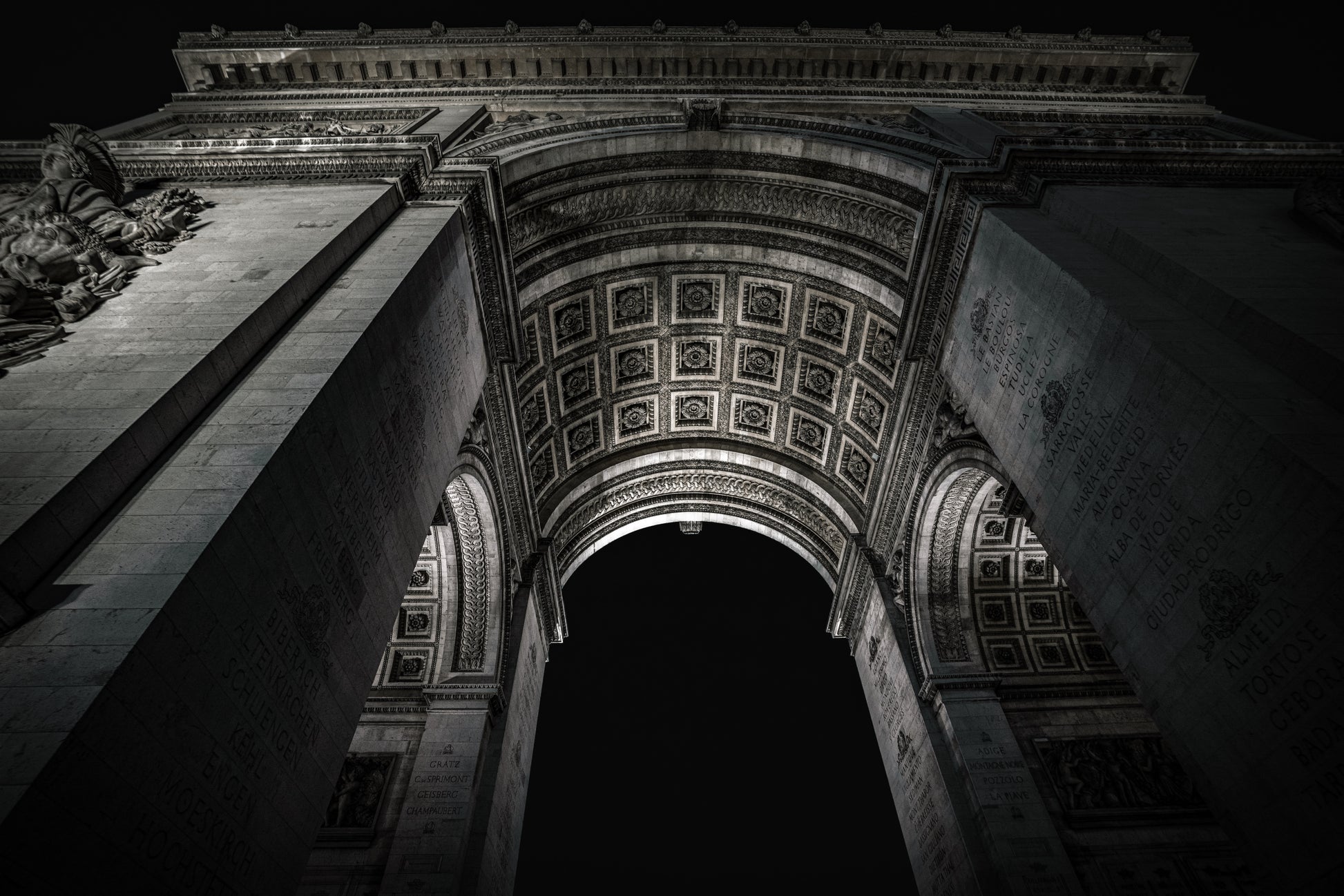 Tapetens mörka bakgrund ger en sofistikerad touch och skapar en dramatisk kontrast till de väldefinierade bågarna och arkitekturen som pryder motivet. Varje båge är noga utformad för att efterlikna den triumferande bågen i Paris och avger en känsla av seger och storslagenhet.