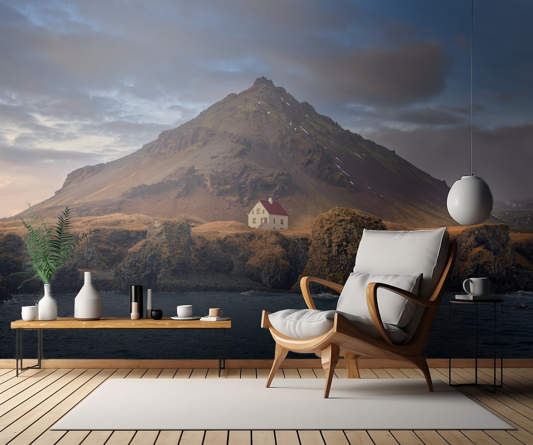 Dyk in i den spektakulära isländska naturen med vår väggtapet "Arnarstapi", skapad av den talented Carlos Cremades.