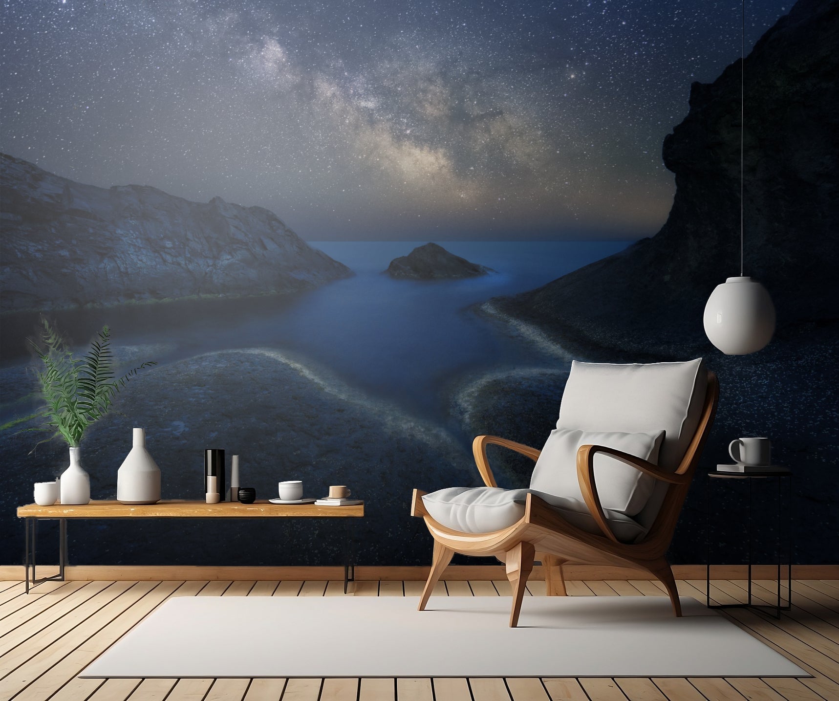 Ge ditt hem en mystisk och drömsk atmosfär med väggtapeten "As Above, So Below" skapad av Albena Markova. Den fångar en magisk känsla av nattlig kust med långa exponeringar som skapar dramatiska och vackra effekter. Med en mörk bakgrund och en himmel full av stjärnor ger tapeten en känsla av att befinna sig vid en klippig kust vid midnatt. Låt dig förföras av den stilla skönheten i det oändliga havet och de dramatiska klipporna som sträcker sig mot stjärnhimlen. "As Above, So Below" är den perfekta tapeten för dig som vill skapa en fridfull och magisk atmosfär i ditt hem.