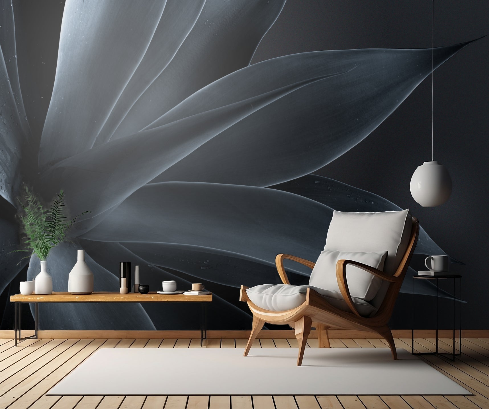 Skapa ett lugnt och elegant uttryck i ditt hem med väggtapeten "Ash" skapad av David Chiodo. Inspirerad av naturens skönhet och elegans, ger denna tapet ditt rum en förtrollande känsla av lugn. Med sitt botaniska motiv av agaves och löv i toner av blått och grått skapar den en stillsam och sofistikerad atmosfär.