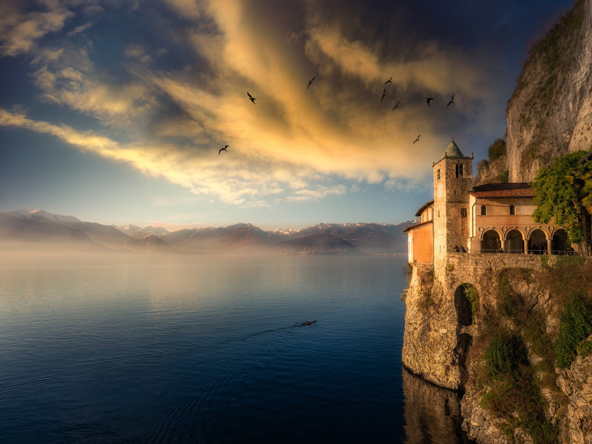Upptäck magin vid solnedgången, i din egen kajak. Med väggtapeten 'At sunset, on the kayak #2' kan du förvandla ditt rum till en vacker naturlandskap. Skapad av den talangfulla konstnären Cristiano Giani, tar denna väggtapet dig med på en resa till en pittoresk sjö omgiven av klippor och en medeltida by.