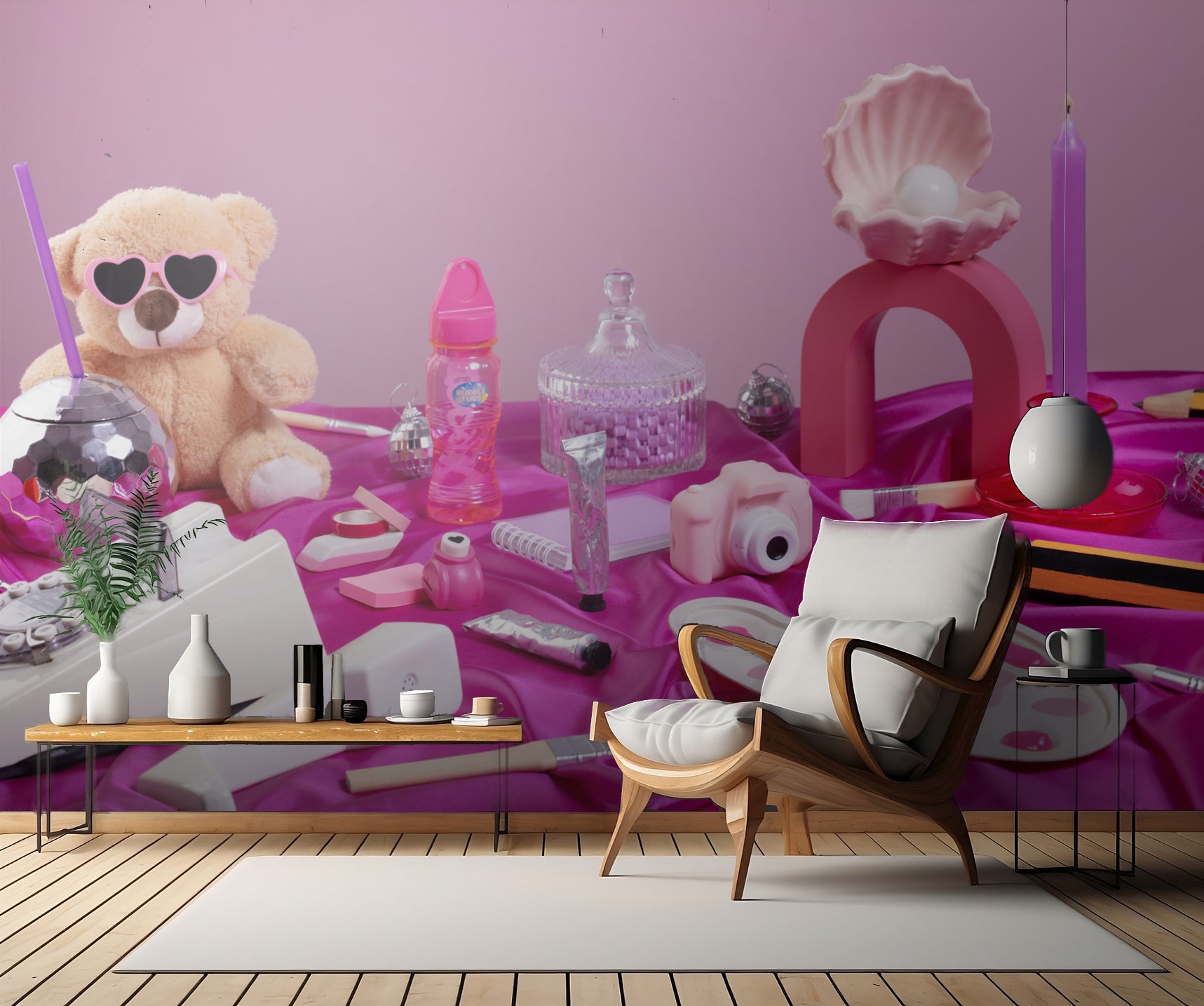 "At the Arts Studio" är en perfekt tapet för att skapa en unik och färgstark miljö i ditt hem. Låt dig själv dras in i denna fantasivärld av färgglada leksaker och stillbilder som garanterat kommer att locka till många lekfulla stunder och glada skratt.
