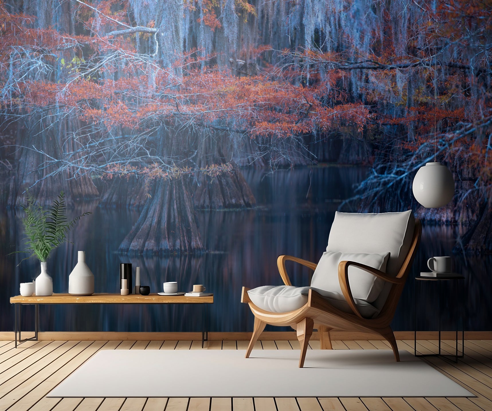 "Förmedla känslan av en magisk höst genom "Autumn above water" tapeten och skapa ett rum som kommer att imponera på alla som går in genom dörren."