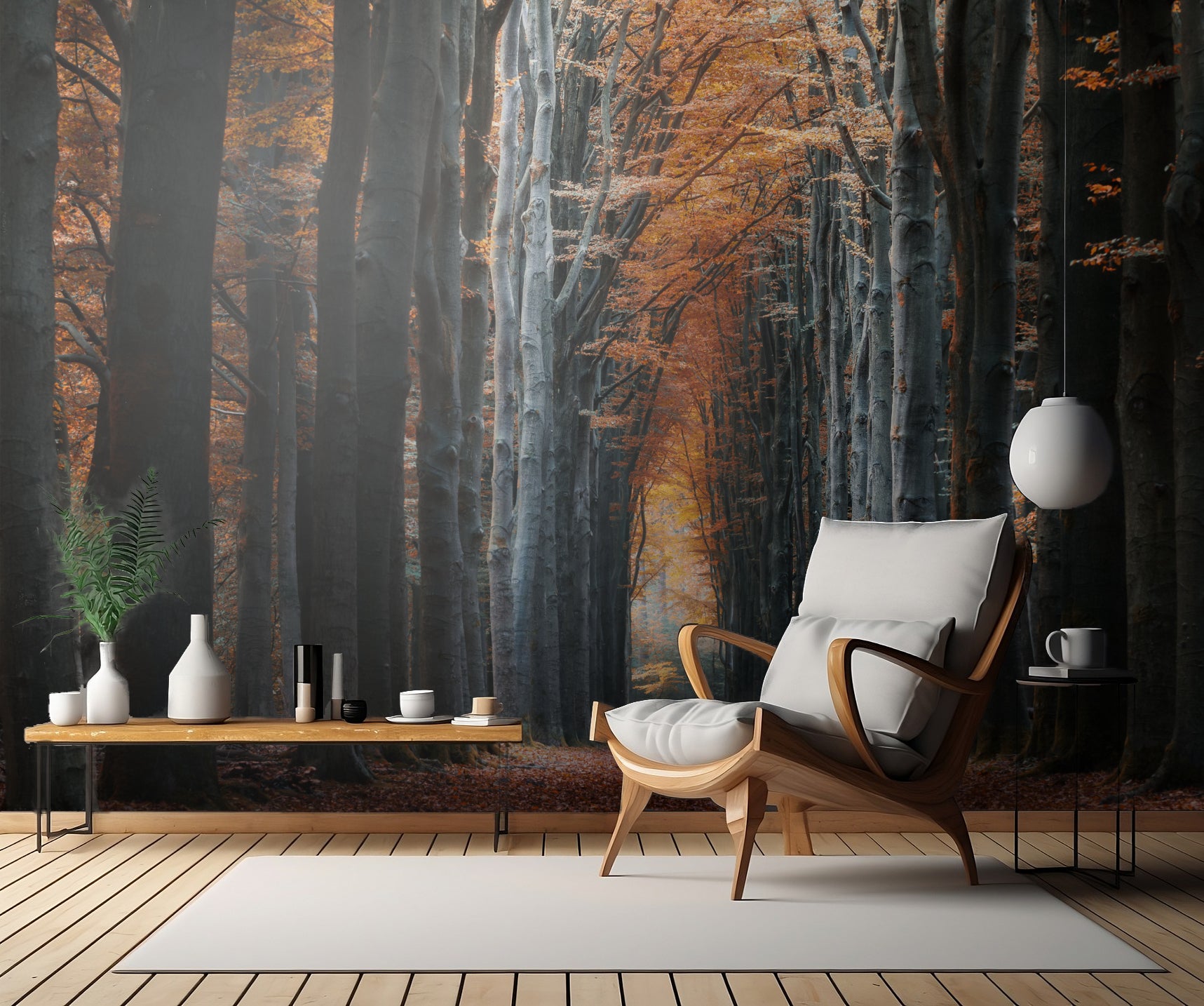Oavsett om du vill ge ditt vardagsrum nytt liv, skapa en intressant och vacker fondvägg eller hjälpa till att förvandla en tråkig korridor, kommer "Autumn Avenue" vara det perfekta valet för dig. Upplev denna förtrollande skogsväg och låt rummet förvandlas till en plats där höstens magi alltid är närvarande.