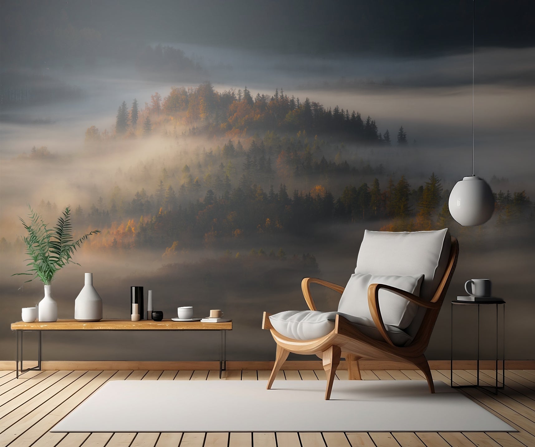 Skapad med detaljrikedom och omsorg, fångar "Autumn" väggtapeten naturens verkliga skönhet under höstsäsongen. Du kommer att förundras över det realistiska landskapet, med träden som gnistrar i alla varma höstfärger. Varje gång du tittar på denna tapet kommer du att transporteras till en fantastisk skog, omgiven av dimmor och dimhöljda träd, som nästan ser ut som en hav av moln.