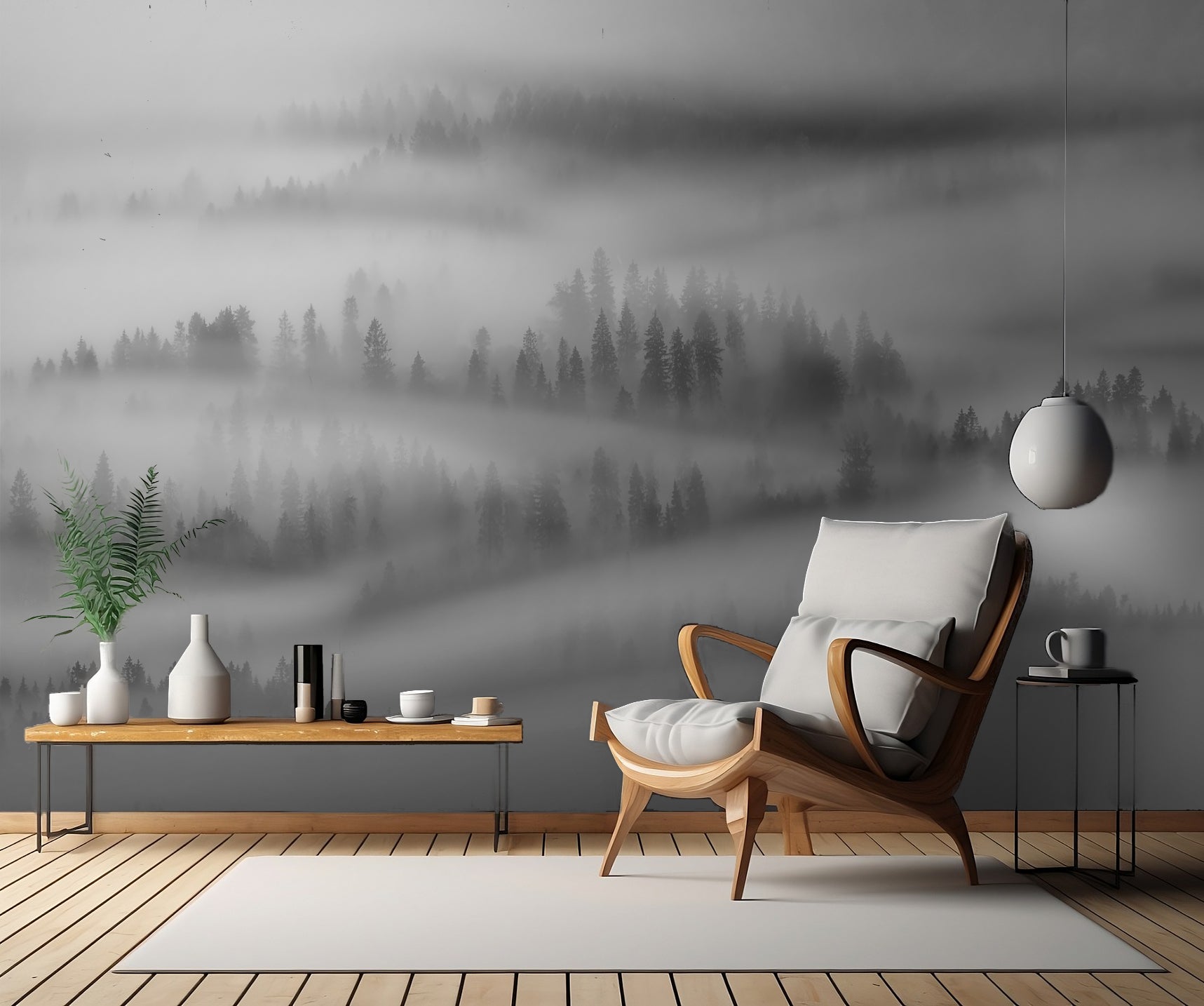 Detta konstverk i tapetform, inspirerat av naturens föränderliga skönhet, omslutet av dimma och dimma, ger din inredning en speciell känsla av lugn och ro. Varför inte låta vår "Autumn Impressions" ta dig med på en drömmande resa in i naturens skönsamma hemligheter?