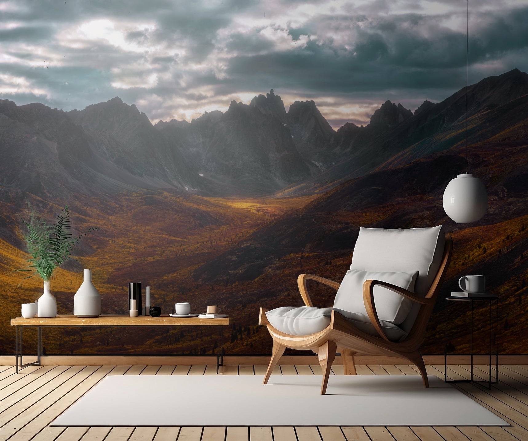 Välkommen till en hisnande värld av överväldigande skönhet och majestät. Med vår nya väggtapet "Autumn in Tombstone Mountain" tar vi dig med på en enastående resa genom naturens underbara skapelser.