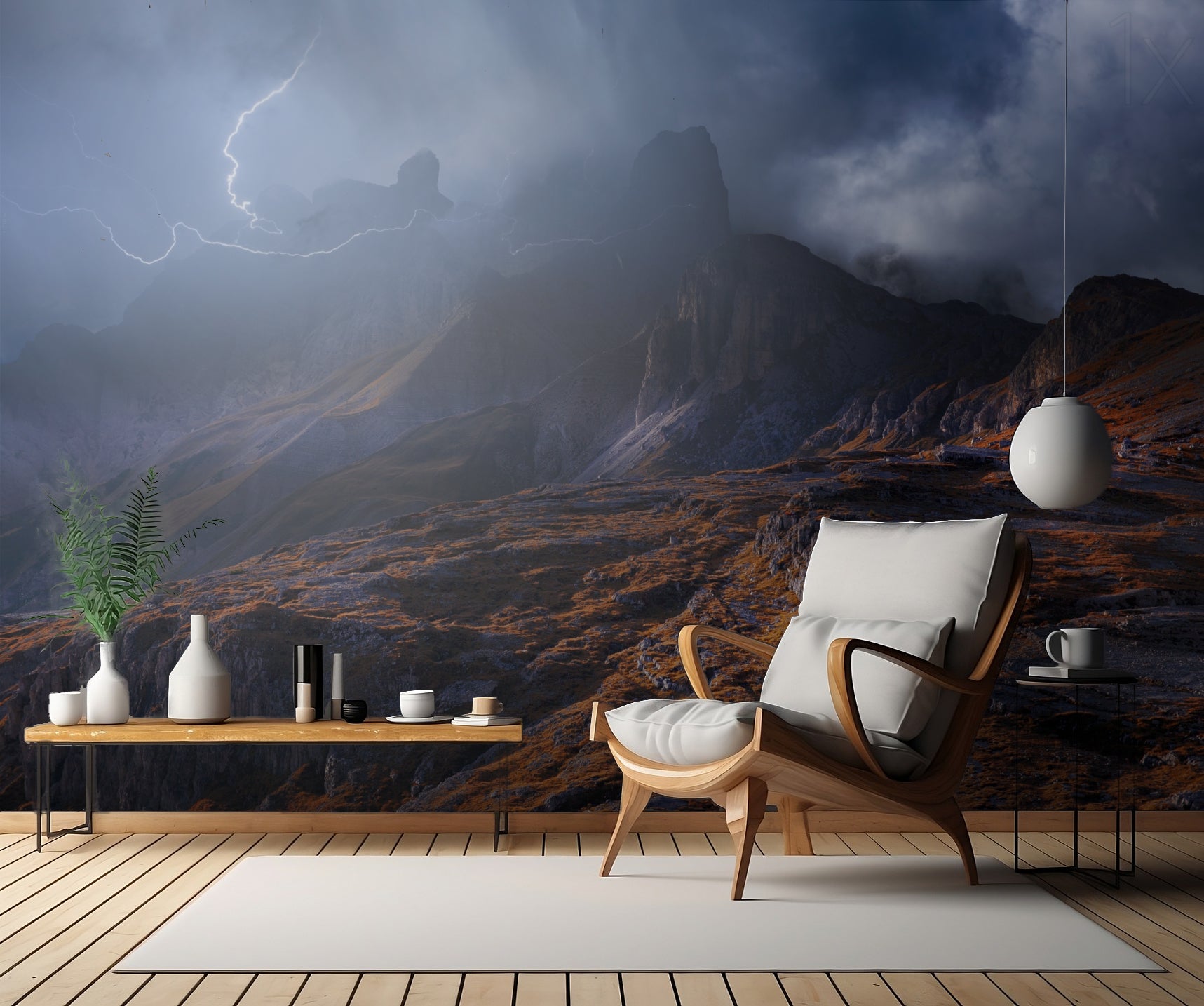 Med sina fantastiska landskapsbilder från de italienska Alperna och Dolomiterna förvandlas ditt rum till en imponerande vy som tar dig rakt in i naturens krafter. Känn dig som om du befinner dig mitt i en åskstorm i bergen med denna unika och drabbande väggdekoration.