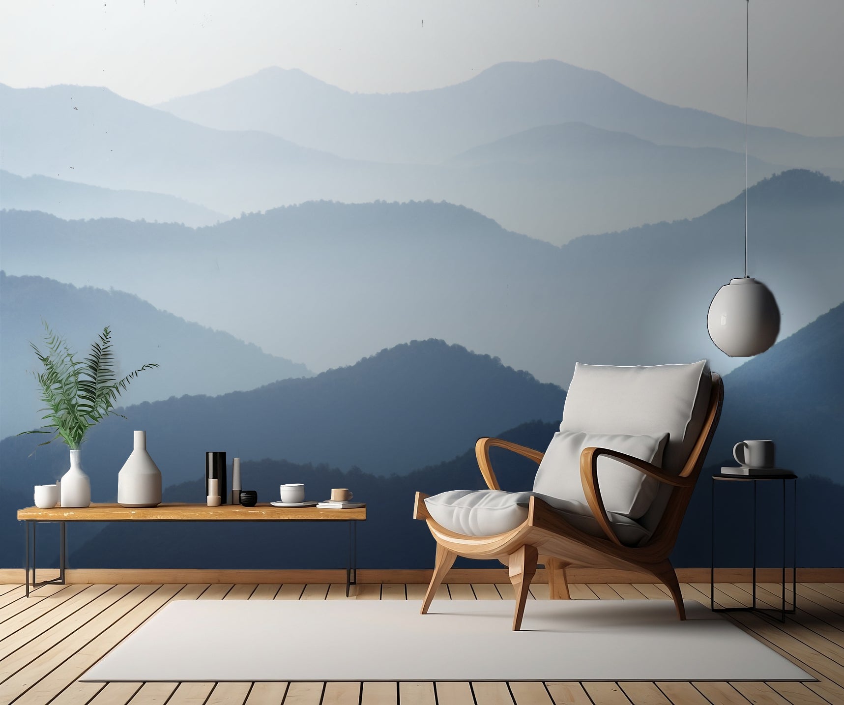 Genom att betrakta "Blue Waves" kan man nästan höra suset från lövträd som rör sig i vinden. Tapetens abstrakta kullar och berg skapar en känsla av dynamik och rörelse. Tack vare de mjuka färgnyanserna blir helhetsintrycket förtrollande och behagligt.