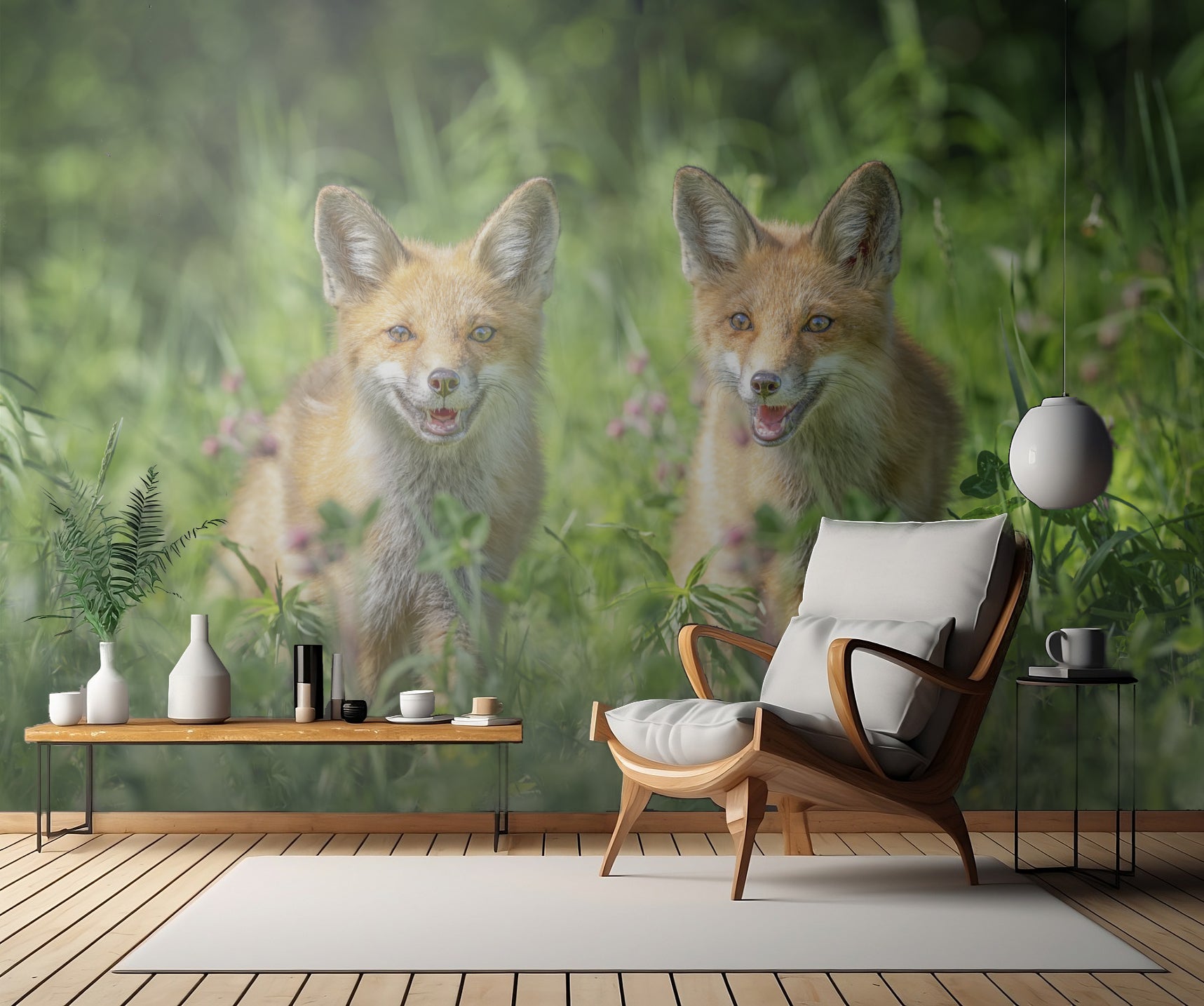 Välkommen till en värld av naturlig skönhet och harmoni med Brothers-väggtapeten! Denna enastående tapet är skapad av den talangfulla konstnären Larry Deng och tar dig med på en resa genom en frodig gräsmatta, där två underbara varelser regerar.