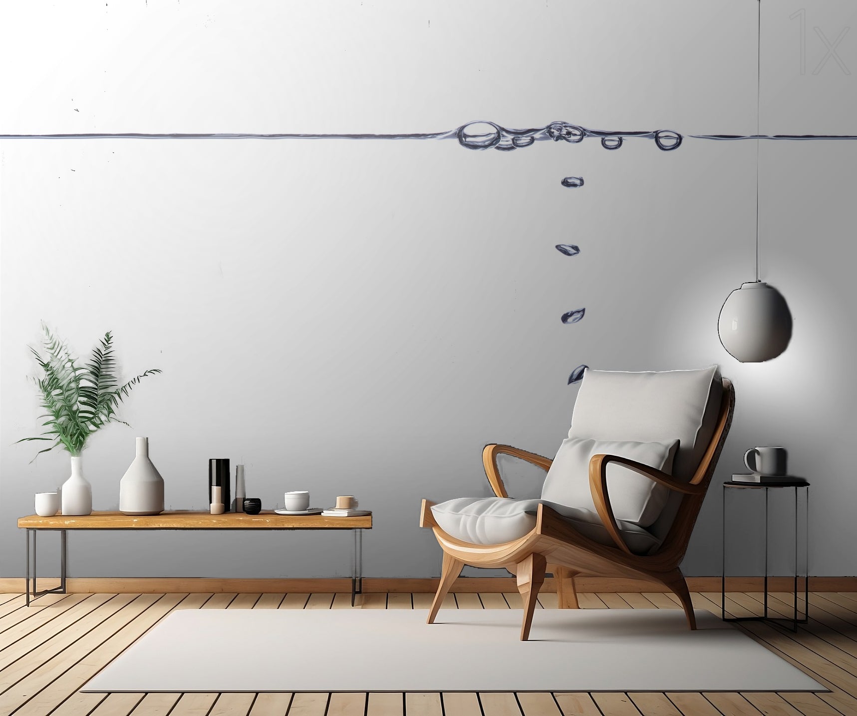 Den vita ytan med sina grafiska linjer skapar en känsla av rymd och lugn i rummet. Med sin höga nyckelkontrast blir "Bubbles" en iögonfallande detalj på väggen som ger karaktär åt ditt rum.