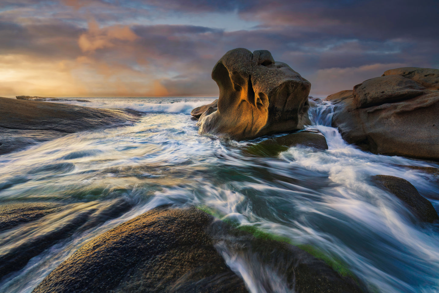 "Cala Roques Planes" fångar in all skönhet hos landskapet med stenar, hav och vågor som möter soluppgången. De mjuka molnen över Girona och skummet från vågorna ger dig en känsla av att vara vid stranden varje dag.