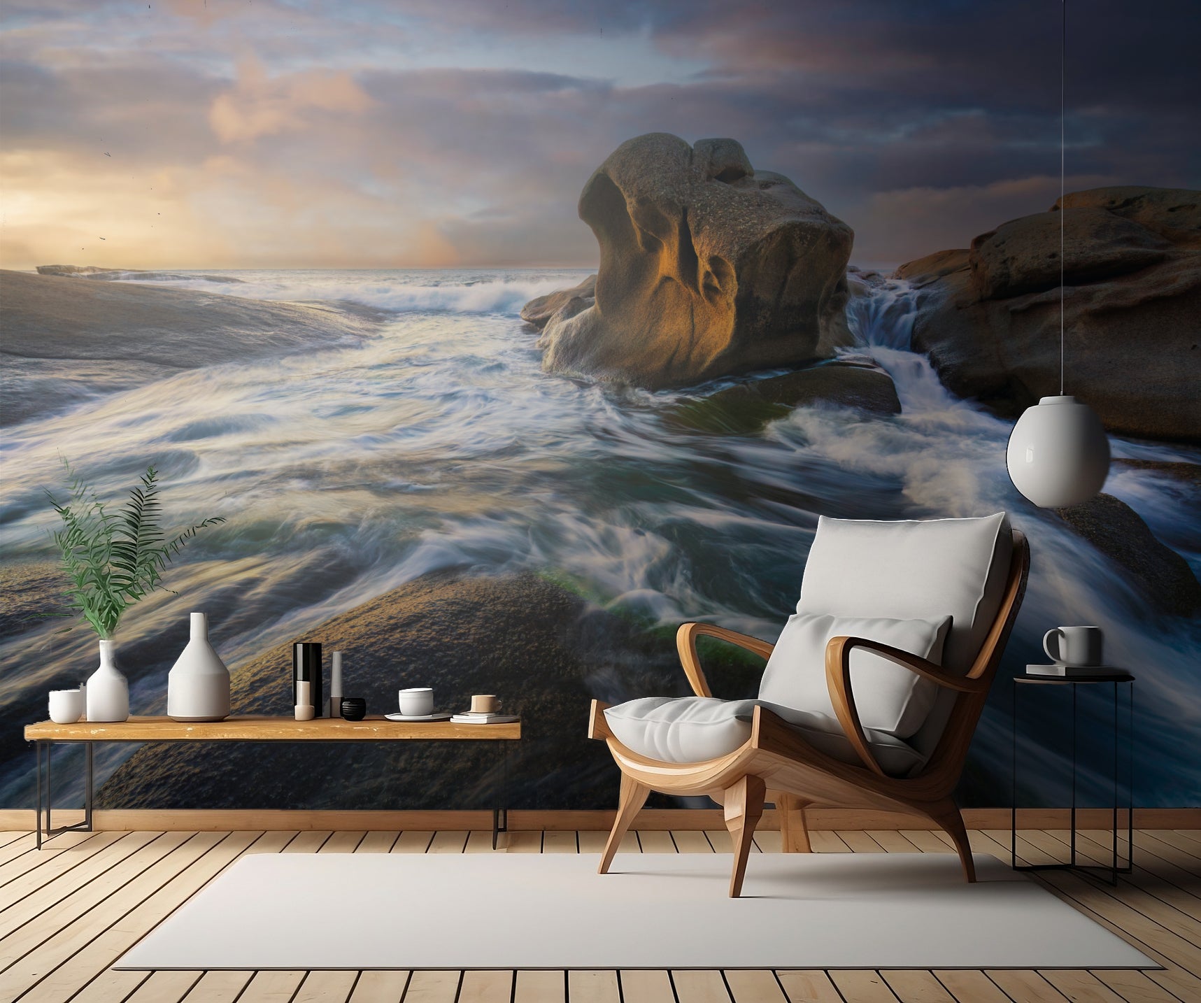 Med sin eleganta design och perfekta kombination av färger blir denna tapet ett utmärkt tillskott till vilket rum som helst i ditt hem. Den perfekta kombinationen av naturliga nyanser av stenar, kustlinje och kustlandskap ger dig en känsla av lugn och ro.
