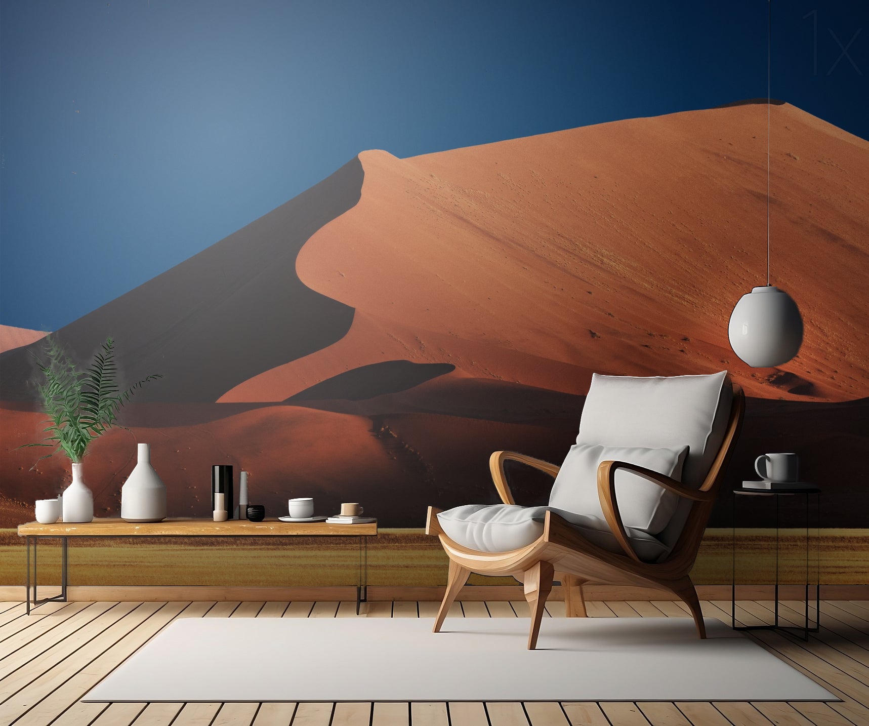 Den naturliga sandfärgen och de snyggt svängda linjerna ger en lugnande och avslappnande effekt, perfekt för ett sovrum eller vardagsrum där du vill koppla av och drömma dig bort till avlägsna platser. De orange tonerna skapar en varm och inbjudande atmosfär, medan skuggorna ger en känsla av mystik och djup.