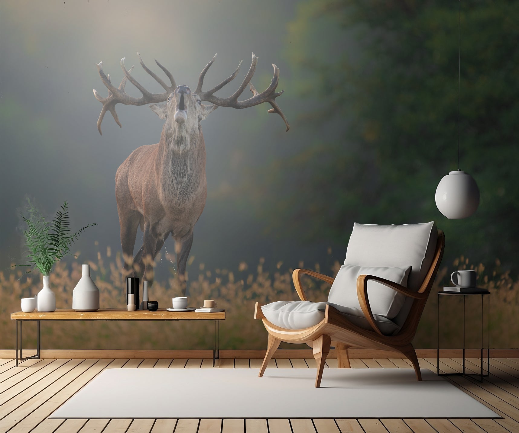 Ge ditt rum en unik och förtrollande touch med väggtapeten "Deer Wedding Song" och låt naturens magi ta plats i ditt hem.