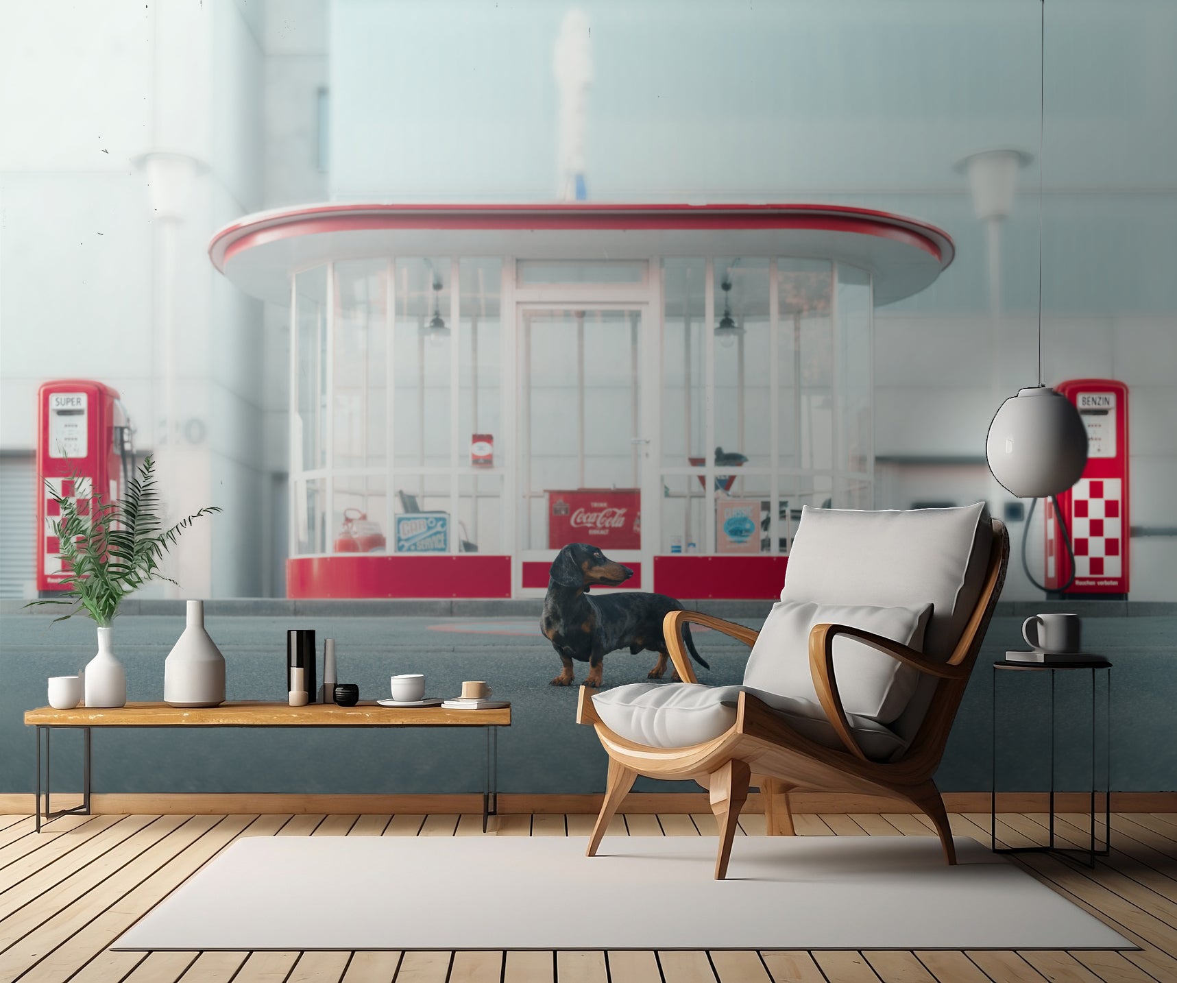 Ge ditt hem en touch av tysk atmosfär och vintage charm med "Der Tankwart" - en unik väggtapet som kommer att bli en samtalspunkt i ditt hem.