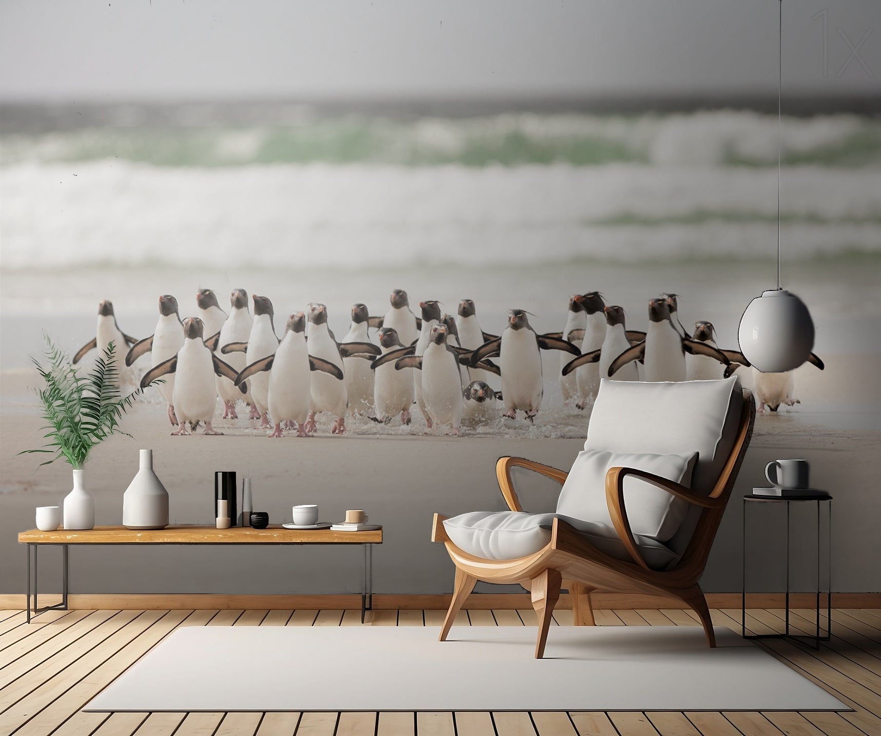 För den som älskar naturen och vilda djur är väggtapeten "Desembarco" det perfekta valet. Skapad av den talangfulla Joan Gil Raga, fångar denna tapet en grupp pingviner som springer längs en sandstrand mot vågorna. Det söta och charmiga motivet ger rummet en känsla av liv och rörelse, samtidigt som det för tankarna till vilda kuster och exotiska platser som Falklandsöarna. Med en perfekt balans mellan vildskap och skönhet är "Desembarco" en tapet som för tankarna till surfande pingviner och vilda djur som springer fritt längs stranden. Skapa en unik och inspirerande miljö med denna fantastiska tapet som garanterat kommer att bli ett samtalsämne bland dina gäster. Ge ditt rum en touch av äventyr med "Desembarco"!
