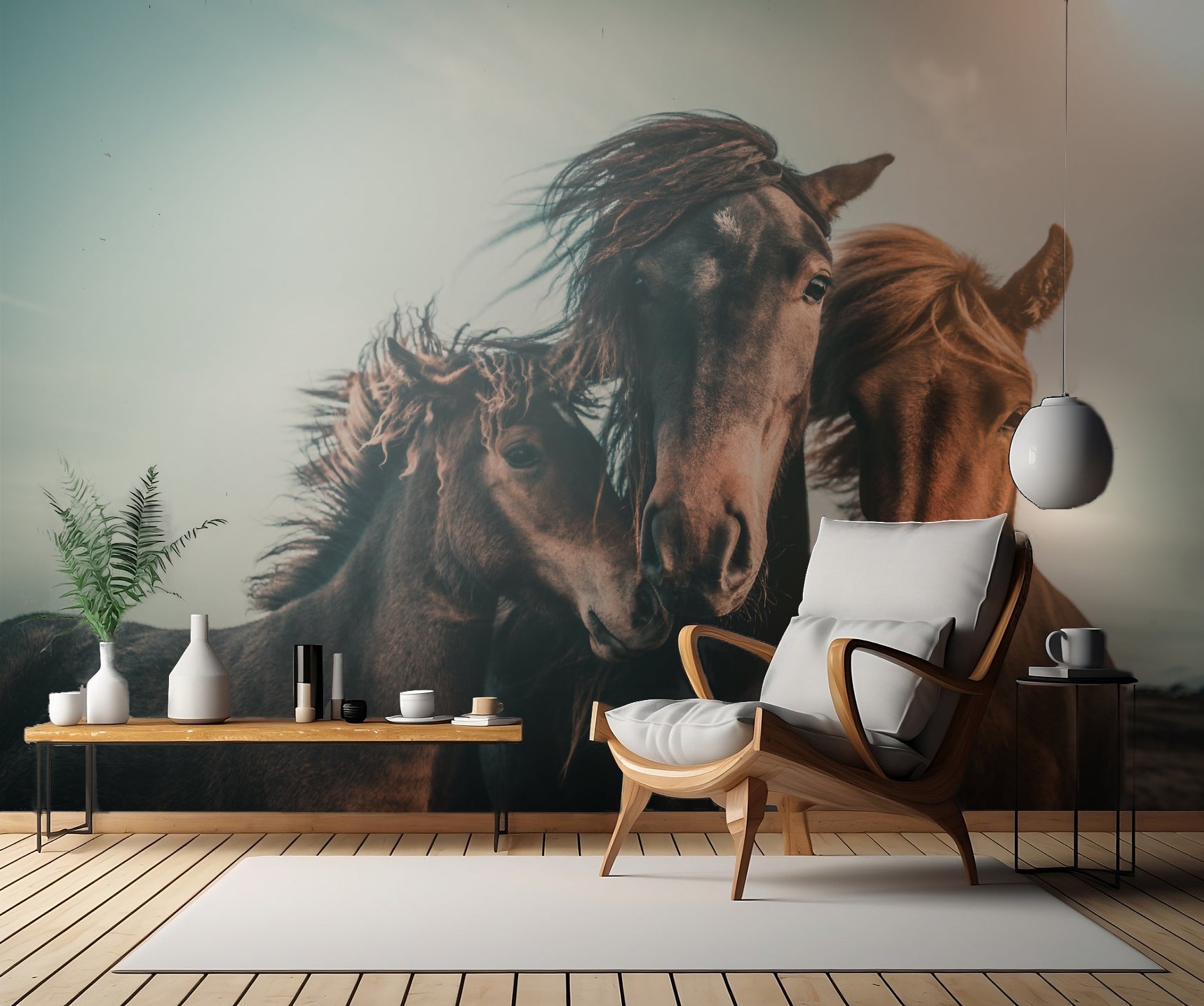 Så låt den här tapeten bli kronan på verket i ditt hem, där varje rum får en känsla av äventyr och värme. Vare sig du är hästälskare, naturskildrare eller bara vill ha en unik och iögonfallande dekoration - "Family Portrait" ger dig allt detta och mer. Marcus Hennen har verkligen fångat skönheten i naturen och förmågan att väcka liv i bilden gör att du, som betraktare, kan resa in i konstverket och uppleva en stund av frid och tystnad.