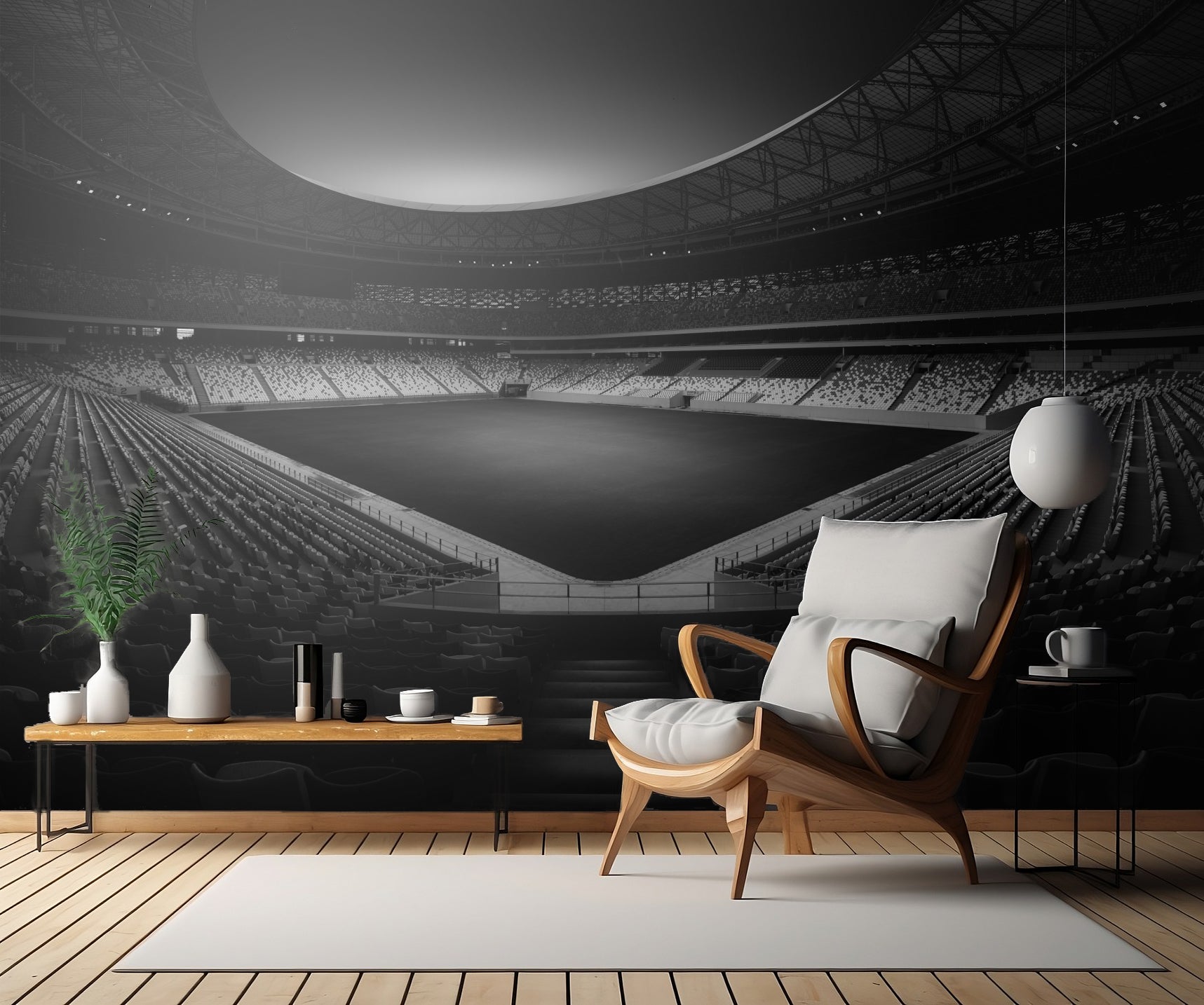 Oavsett om du är en sportälskare som älskar att vara mitt i handlingen eller en arkitekturälskare som uppskattar unika perspektiv, kommer denna tapet att imponera på dig och dina gäster. Med dess imponerande detaljer och känsla av djup skapar den en dramatisk och modern atmosfär i rummet.