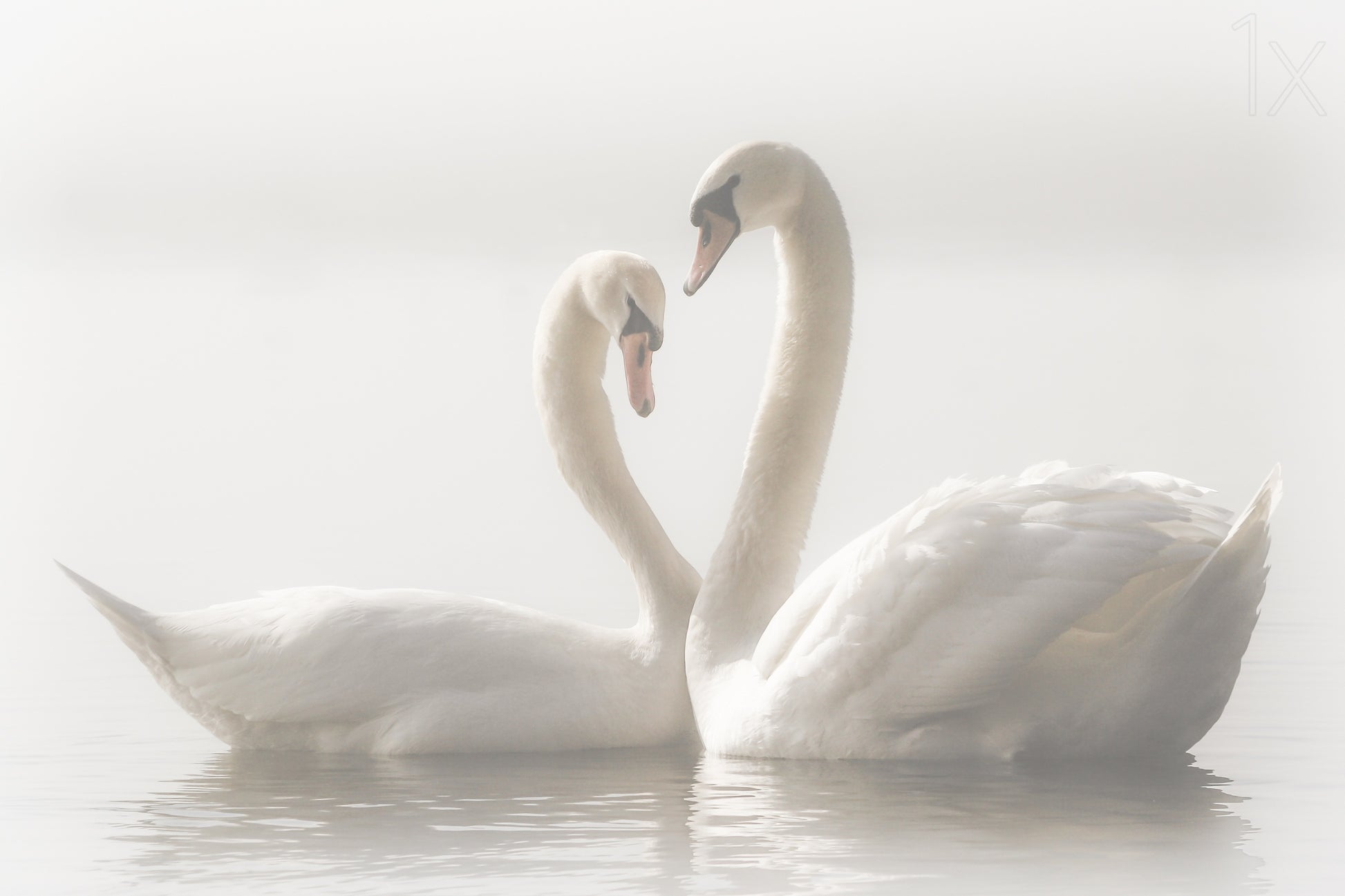 Bilden av de två svanarna i dimhöljet ger en romantisk och drömliknande stämning. De blir de perfekta motiven för att skapa en atmosfär fylld av kärlek och romantik, där du kan koppla av och släppa vardagens bekymmer.