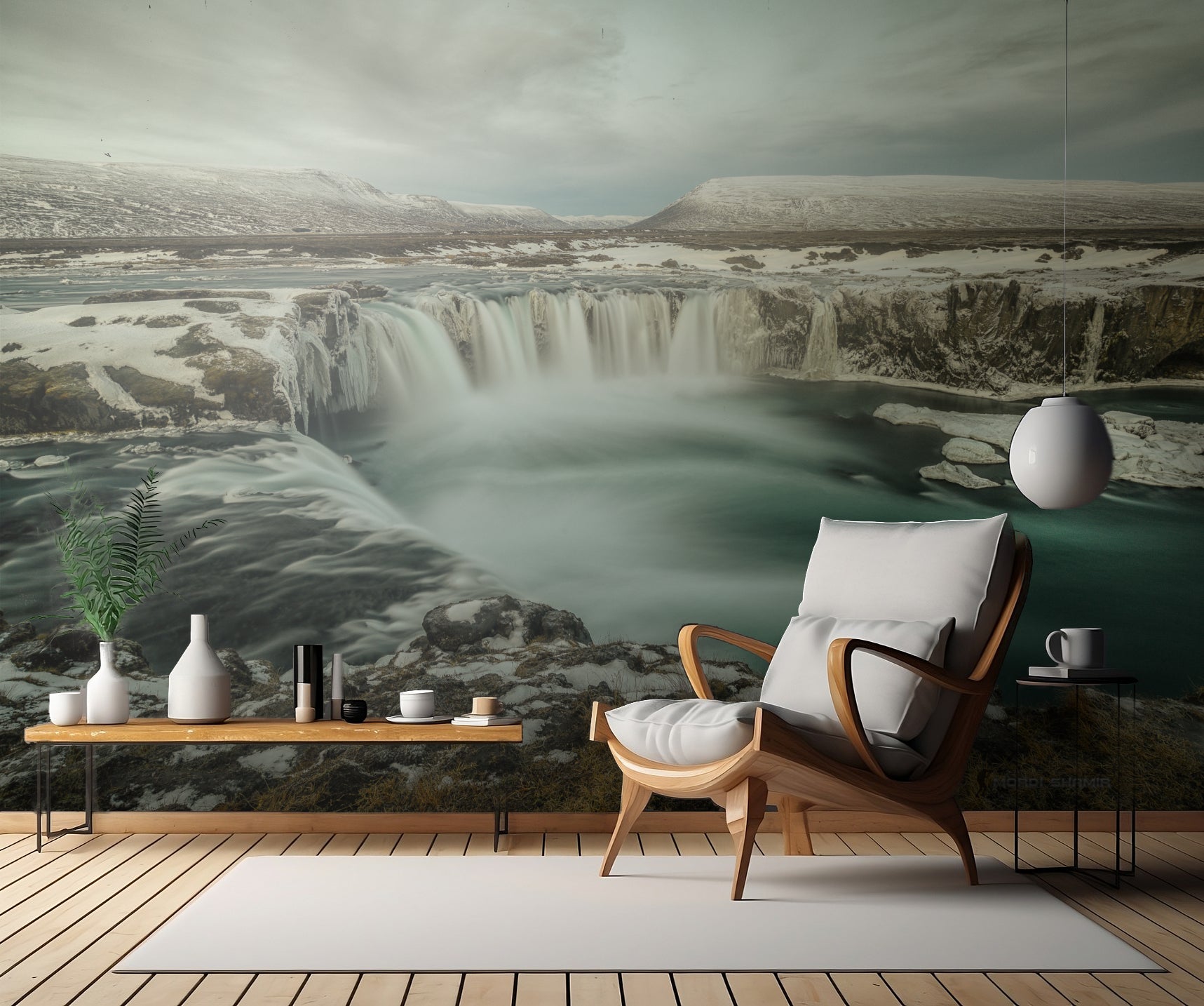 Skapa en magisk oas i ditt hem med vår otroliga väggtapet "Waterfall" skapad av den begåvade konstnären Mordi. Denna vackra tapet fångar essensen av en imponerande vattendriva under en kall vinter med sin förtrollande långtidsexponering. Upplev känslan av att vara omgiven av det vita, flödande vattenfallet som rinner genom det frusna landskapet och skänker ett lugnande flyt till din inredning. Vår väggtapet är en konstnärlig tolkning av en vattendriva och ger en unik touch till ditt hem. Ge din inredning en känsla av rörelse och liv genom att välja "Waterfall".
