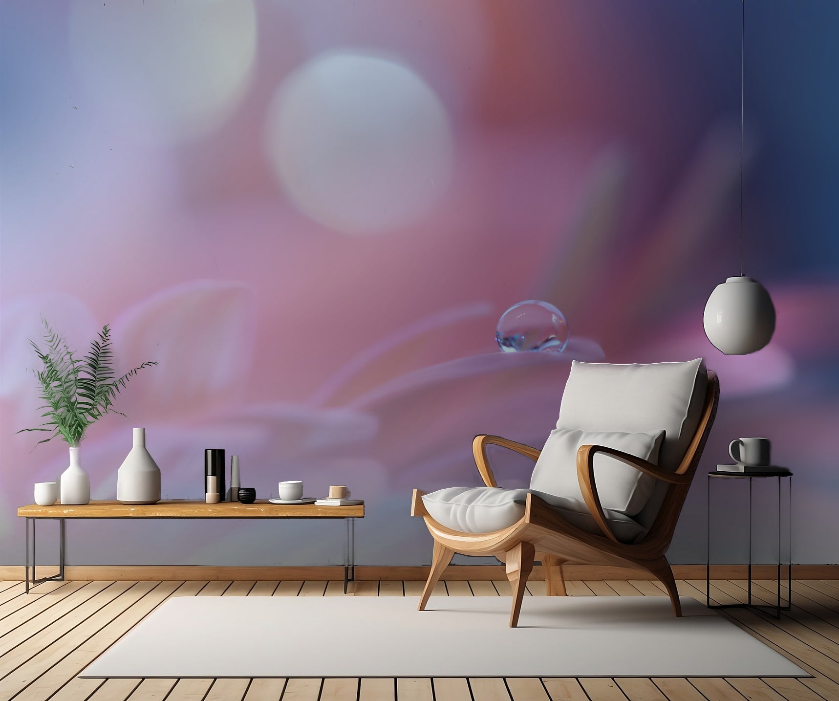 Med motiv av vatten, bokeh, speglingar och blommor blir denna tapet som en målerisk scen från en lummig trädgård. Varje detalj har fångats med precision och kärlek till naturens skönhet. Blommorna, blomsterprakt, och flora skapar en harmonisk känsla, medan de mjuka färger och pastelltoner ger ett naturligt och ljuvligt intryck.