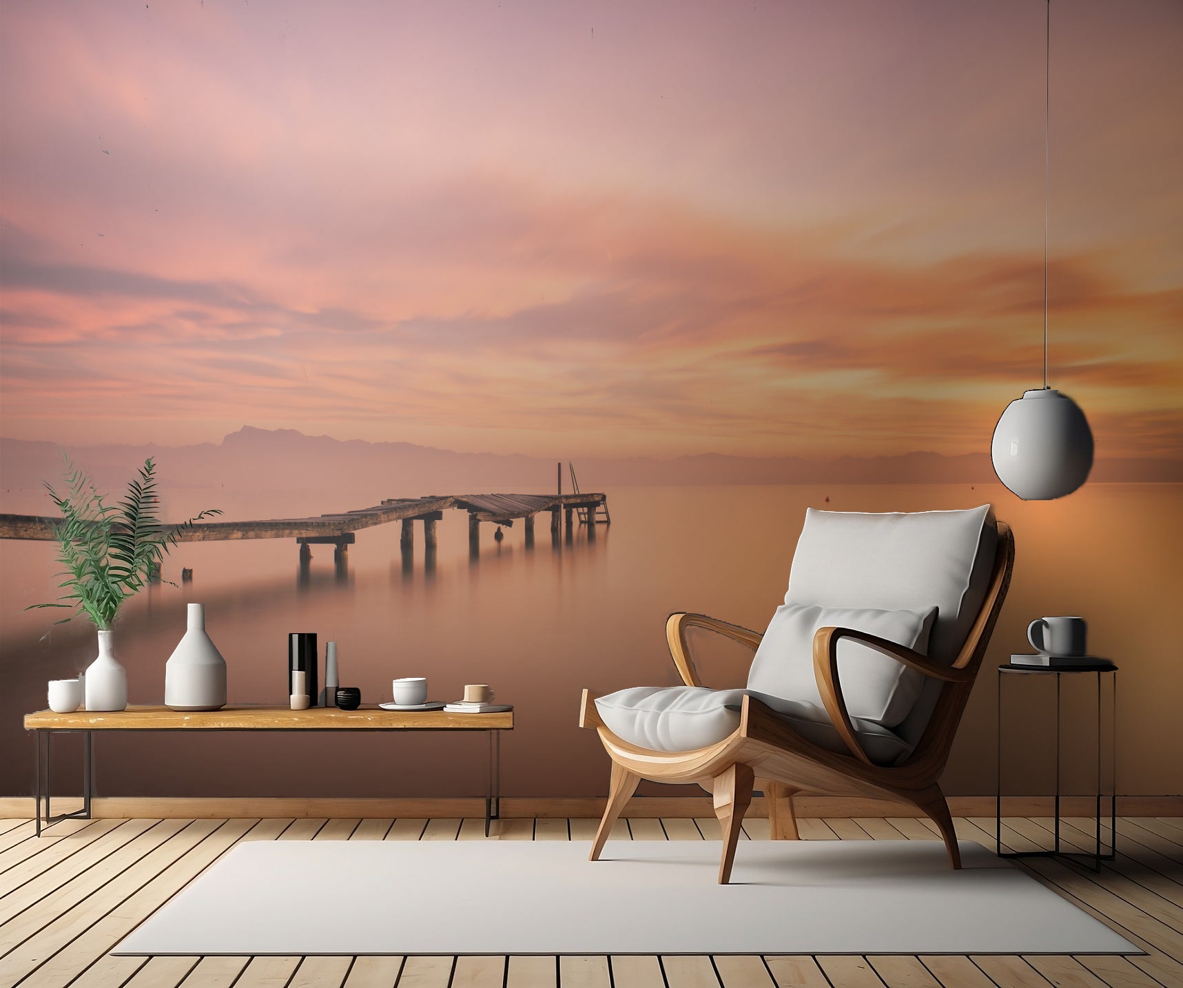 Varje detalj på tapeten är noggrant utformad för att ge en känsla av serenitet. Med en lång exponering kommer vattnet till liv och ger en verklig känsla av rörelse och elegans. Promenera längs piren och njut av den fantastiska utsikten, eller ta en paus vid denna vackra plats.