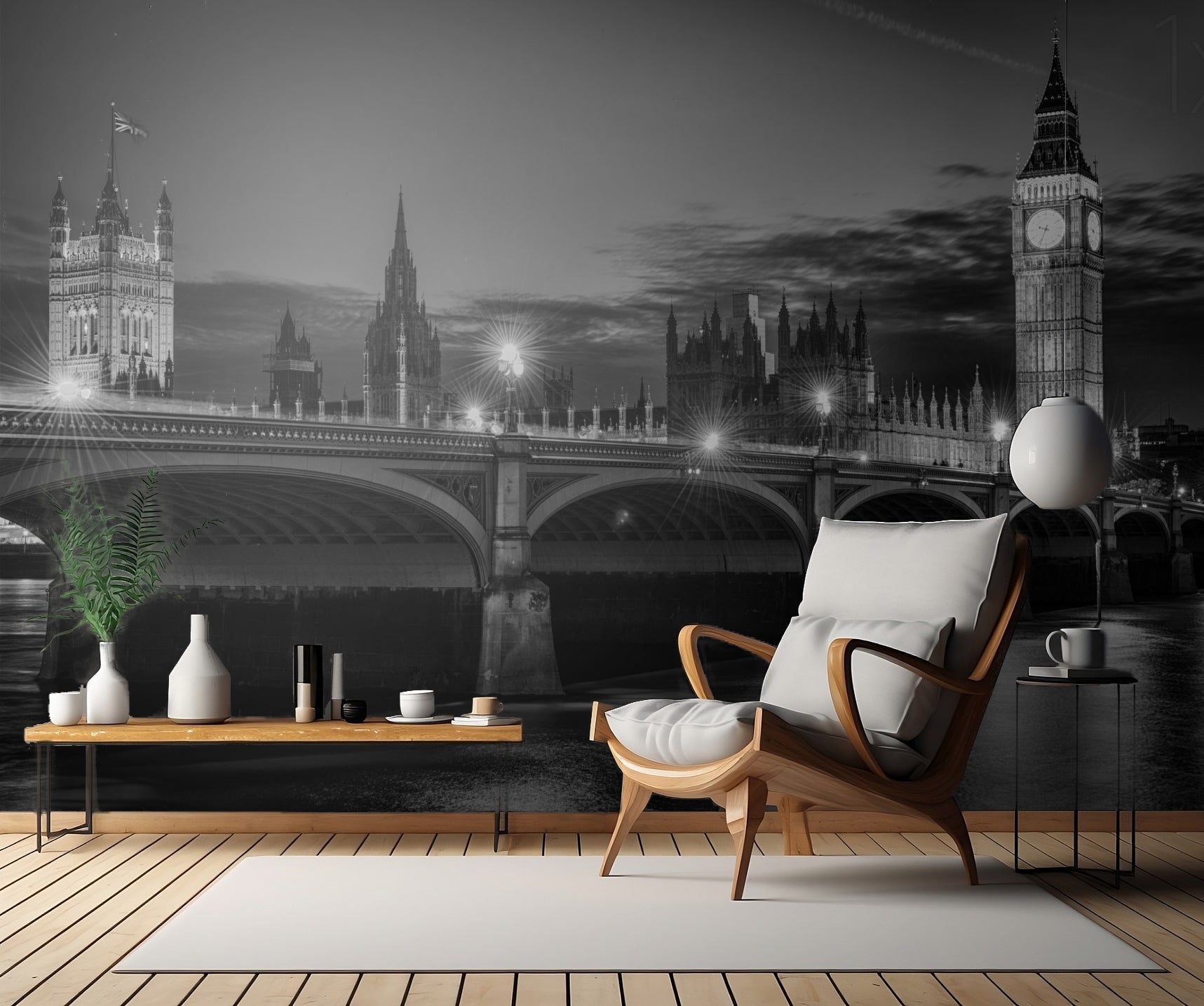 Välkommen till en värld av nattens mystik och arkitekturens skönhet med vår väggtapet "Heritage". Med motiv från Londons mest kända landmärken som Big Ben, Westminster Bridge och Tower får du en känsla av att vara mitt i Englands pulserande huvudstad. Klocktornet som symboliserar tidens gång blir en central del av rummets inredning och skapar en unik atmosfär.