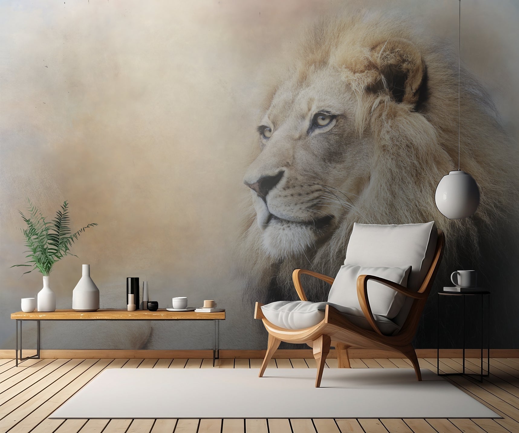 Det måleriska ansiktet på lejonet ger en känsla av djup tanke och visdom, vilket ger rummet en aura av mystik och elegans. Lejonets majestätiska manke och starka närvaro skapar en atmosfär av styrka och kunglighet, perfekt för den som vill känna sig som en kung i sitt eget hem.