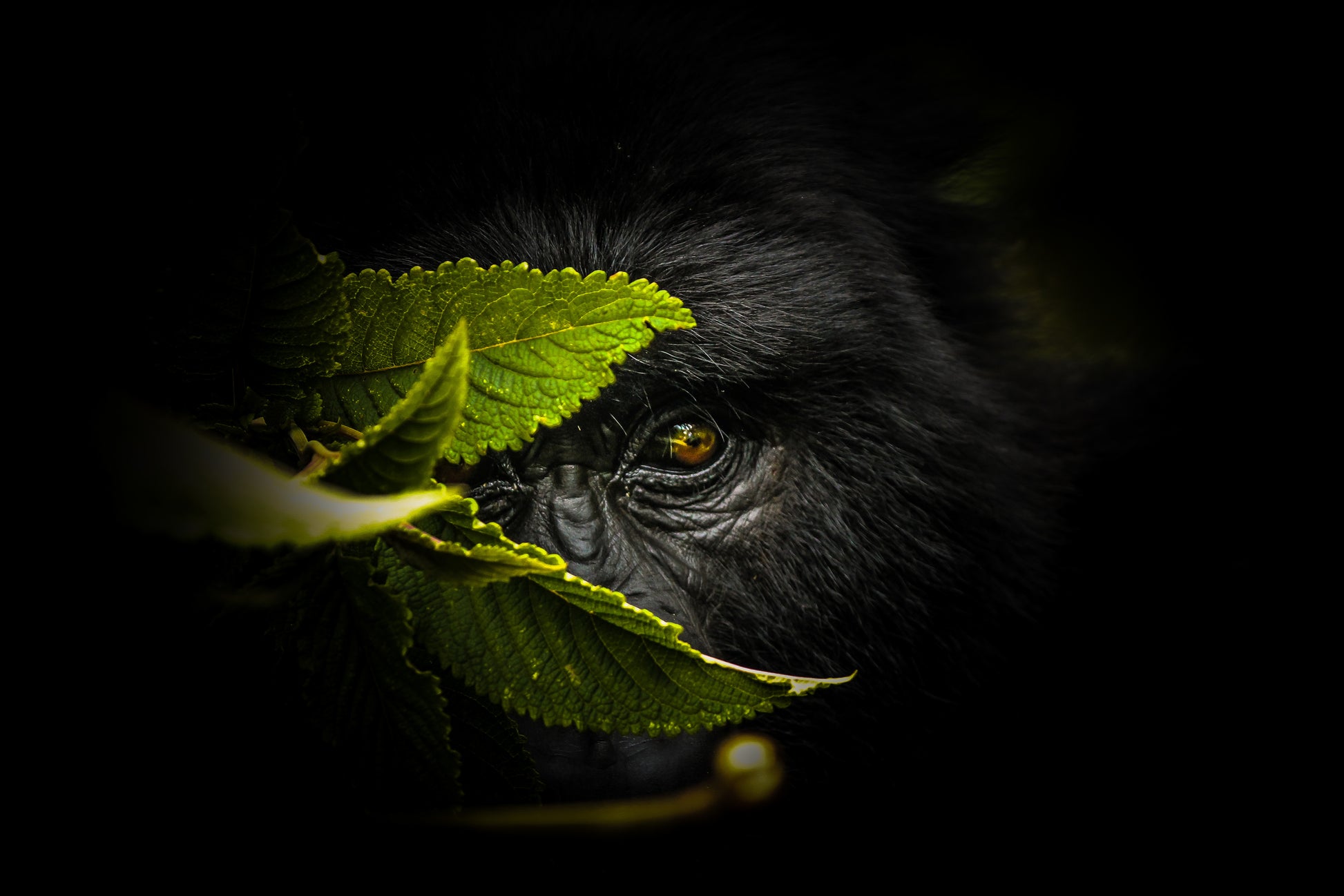 Ge ditt rum en mystisk och lockande atmosfär med väggtapeten "Keeping secrets" skapad av ManginiPhotography. Tapeten har en konstnärlig design inspirerad av den afrikanska naturen, med bilder av gorillor som smälter in i sitt naturliga habitat. Genom att kombinera mörka toner och enkla former skapas en känsla av mystik och förtrollning.