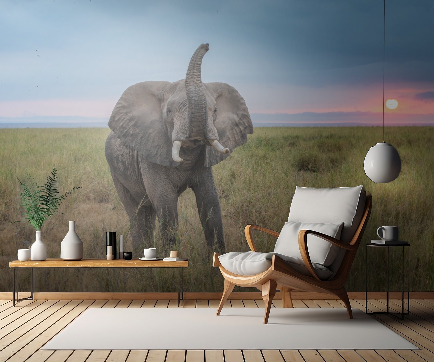 Att titta på den här tapeten är som att kliva rakt in i en annan värld. Amboseli National Park kommer till liv i ditt eget hem, med en konstnärlig avbildning av dess vidsträckta savanner och fascinerande djurliv. Du kommer känna hur savannans puls vibrerar genom dina fingrar när du stryker över tapetens lena yta.