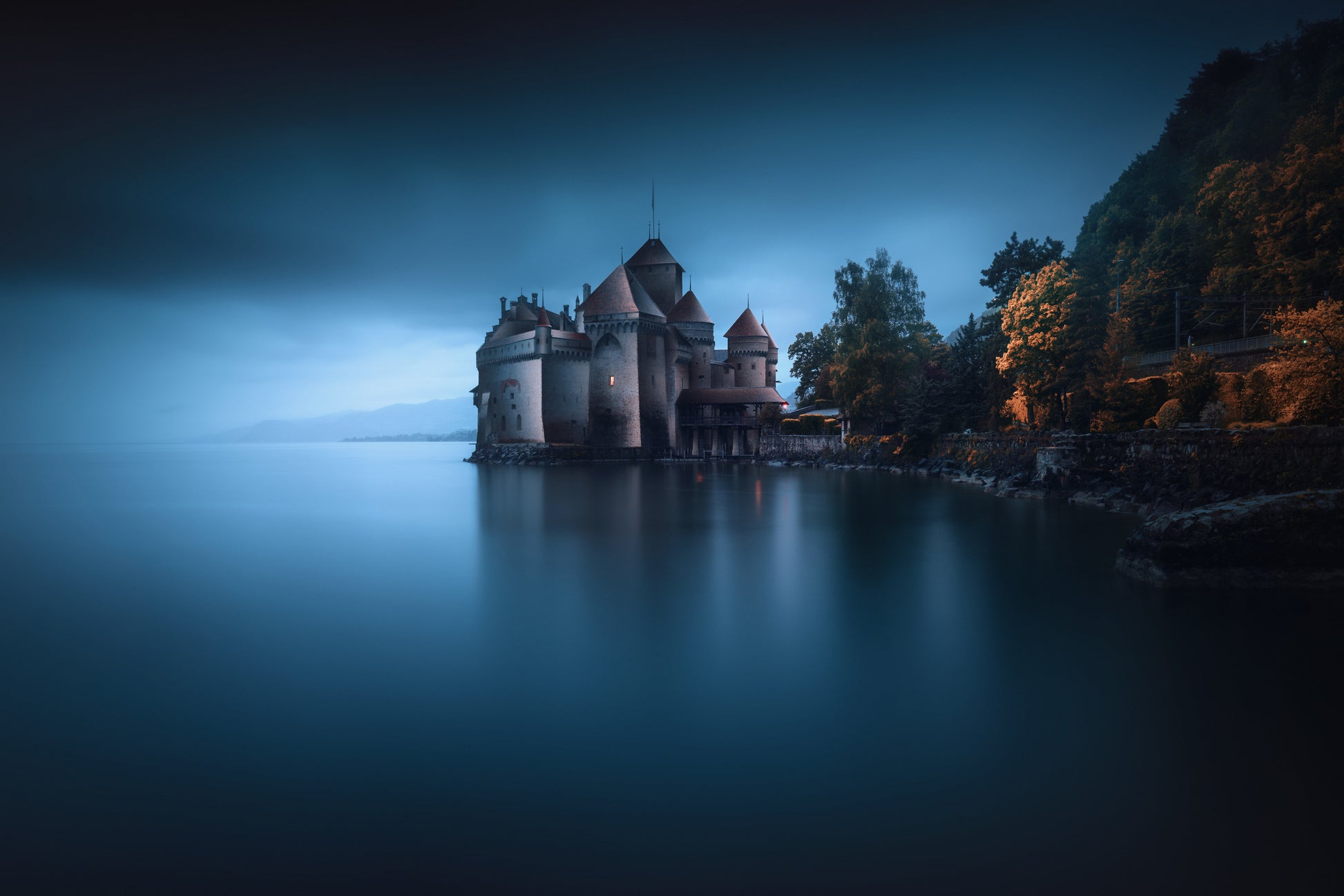 Tapeten är inspirerad av den magnifika Chillon-slottet vid Genèvesjön. Den elegant reflekterar i det kristallblå vattnet och skapar en atmosfär av lugn och frid. Dessutom förstärker det antika arkitekturen och de medeltida tornen den förtrollande känslan av att vara en del av en svunnen era.