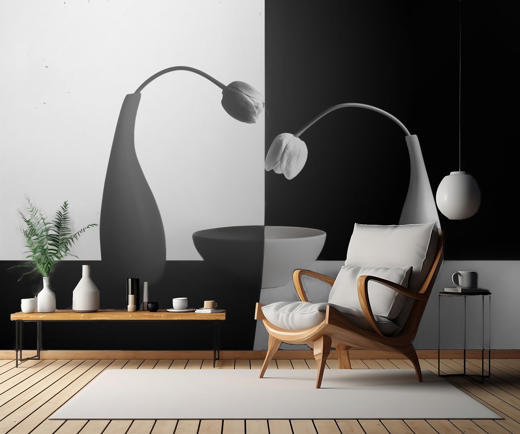 Denna unika tapet tar inspiration från STILL LIFE konstverk och prydliga blommor, vilket skapar en harmonisk balans mellan det östliga och västliga. Yin och Yang-elementet är subtilt inkorporerat i mönstret, vilket ger en kontrast mellan det svarta och vita.